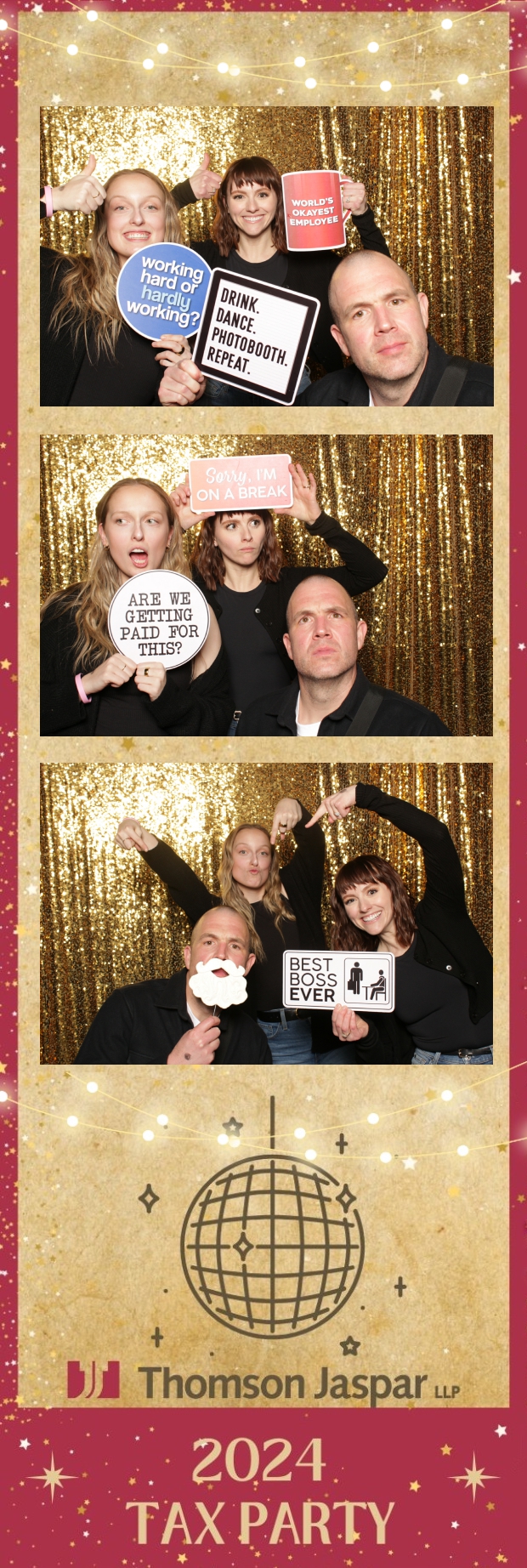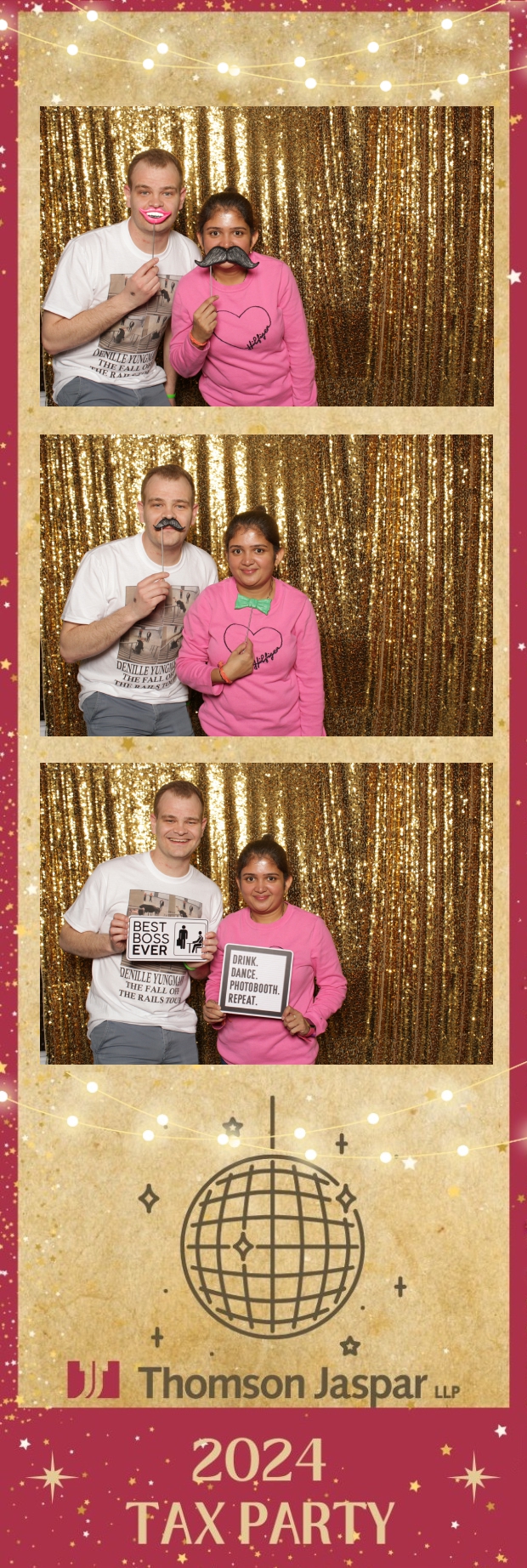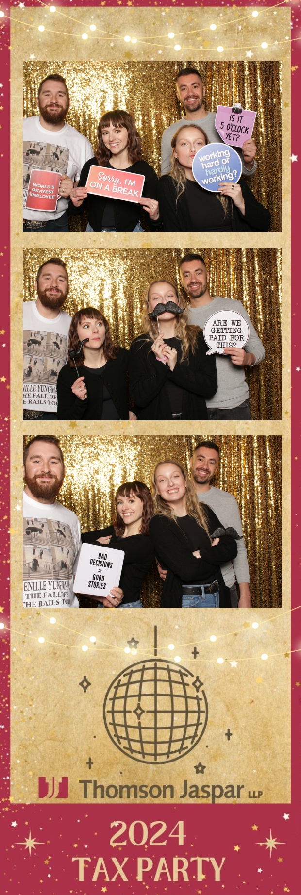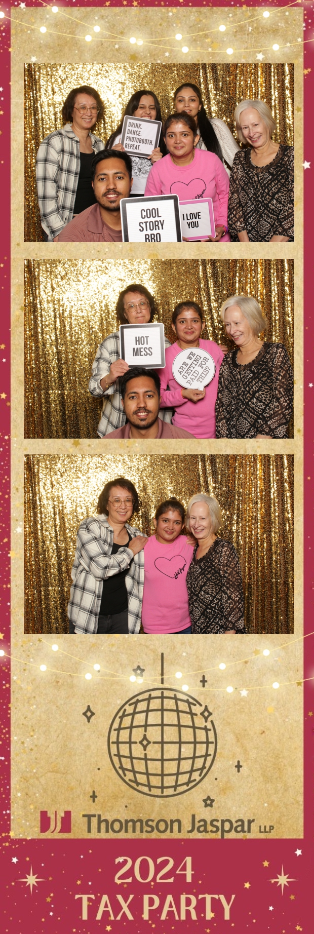 Get ready to celebrate in style at the 2024 Tax Party hosted by Thomson Jaspar! Held at the lively Capitol Music Club in Saskatoon, this event was the talk of the town, bringing together employees and clients for a night of festivities. True North Photo Booth was thrilled to be part of the excitement, offering a unique 2X6 custom photo strip experience against a dazzling gold sequin backdrop.