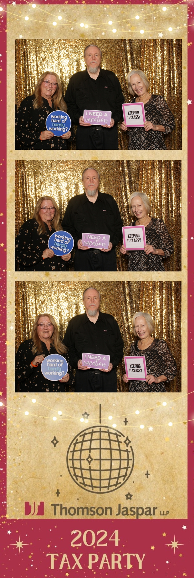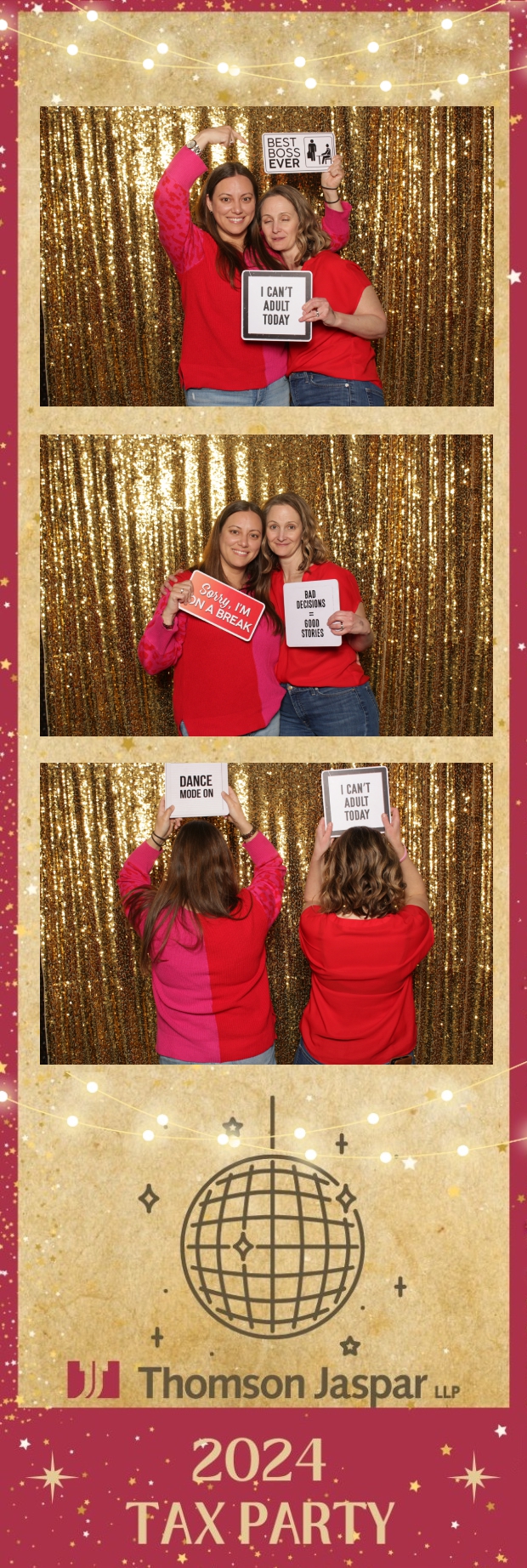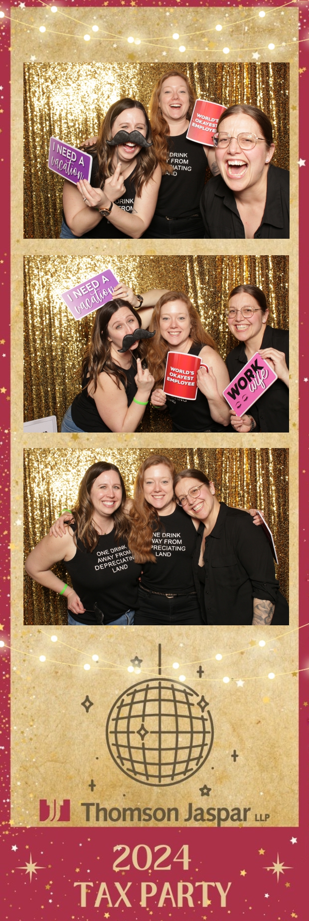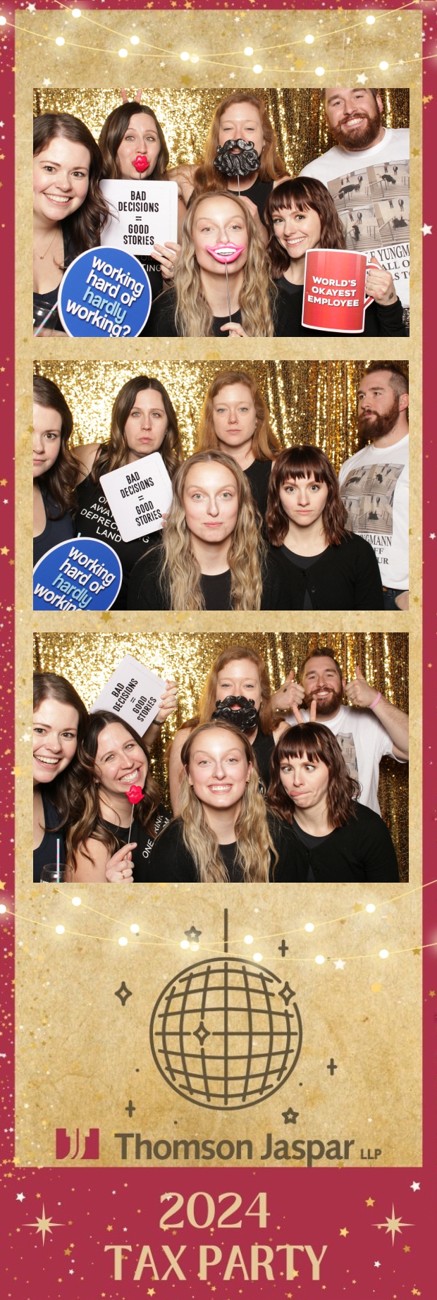 Get ready to celebrate in style at the 2024 Tax Party hosted by Thomson Jaspar! Held at the lively Capitol Music Club in Saskatoon, this event was the talk of the town, bringing together employees and clients for a night of festivities. True North Photo Booth was thrilled to be part of the excitement, offering a unique 2X6 custom photo strip experience against a dazzling gold sequin backdrop.