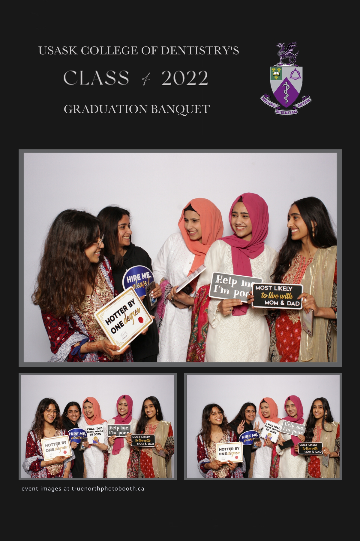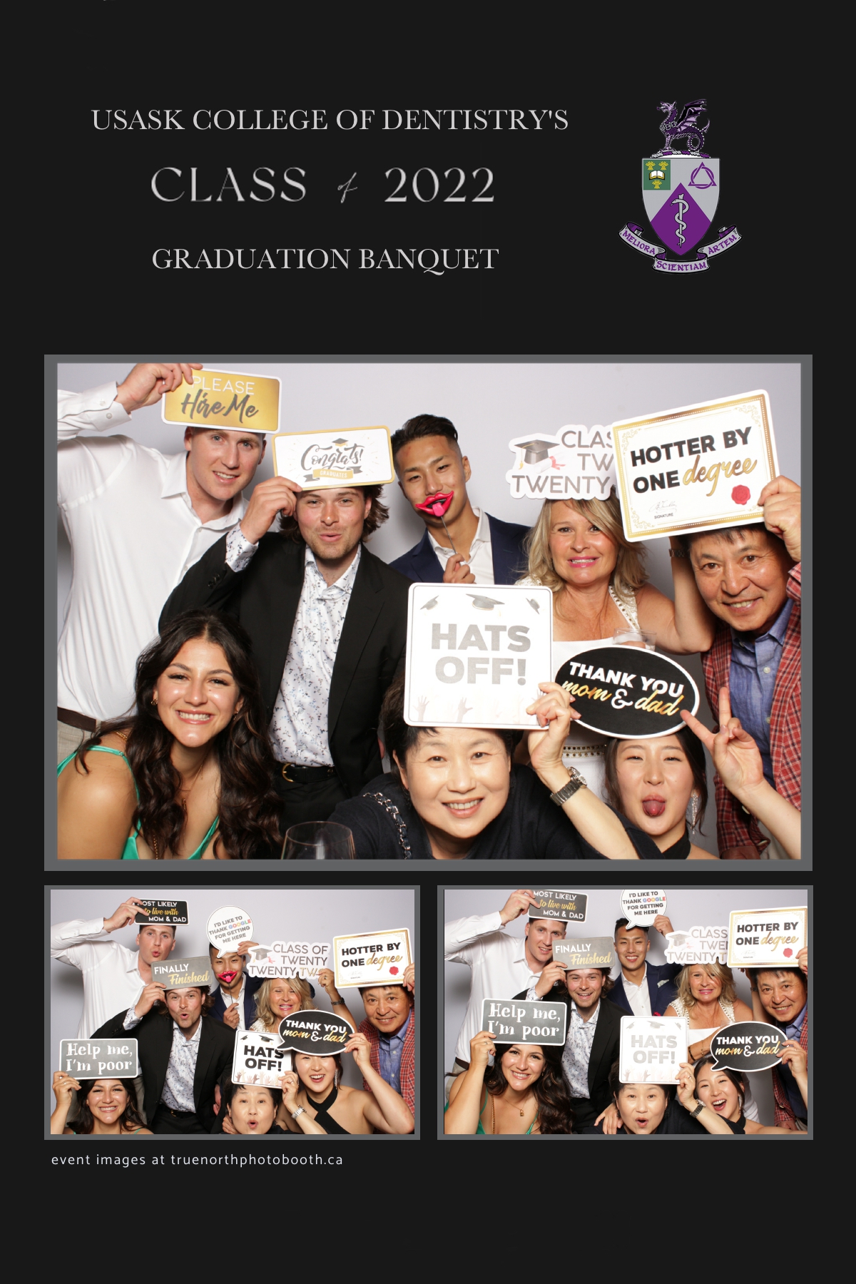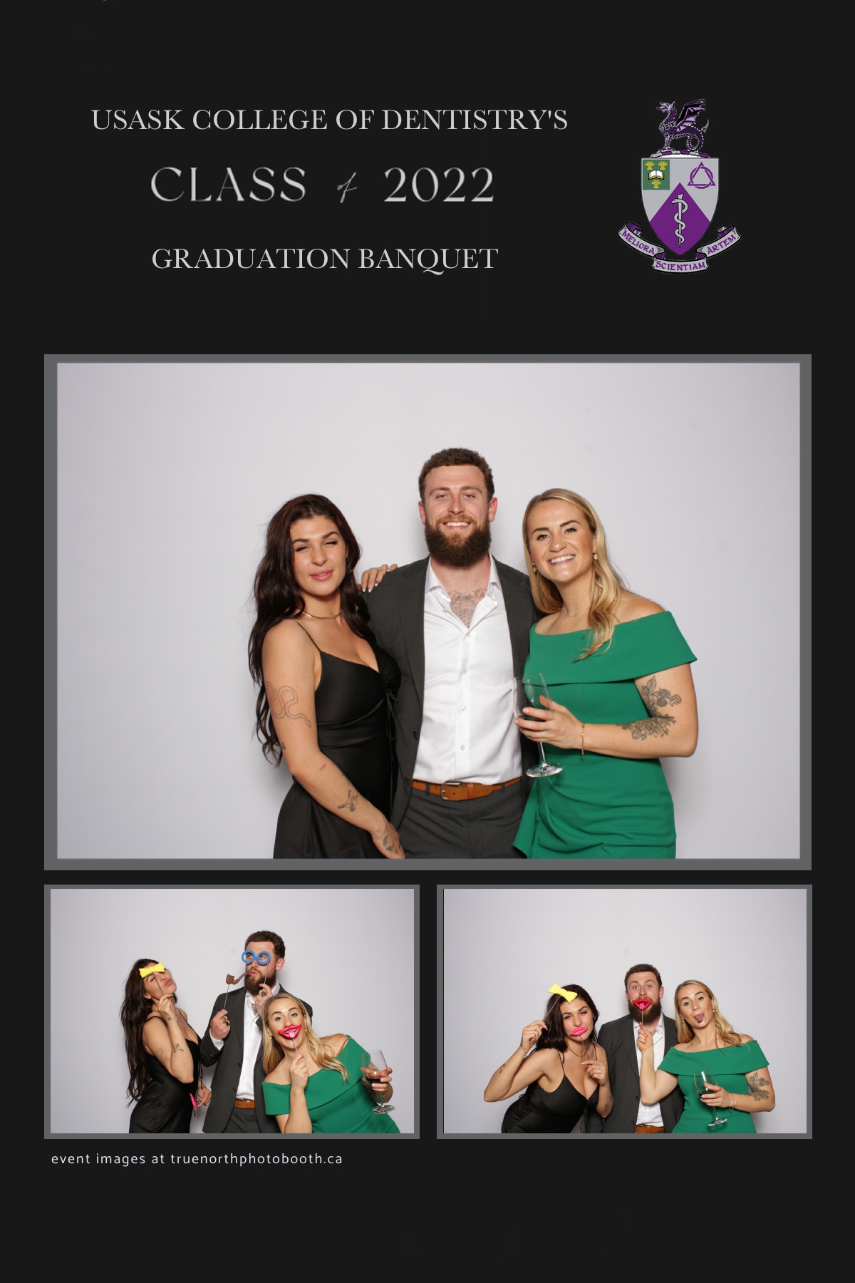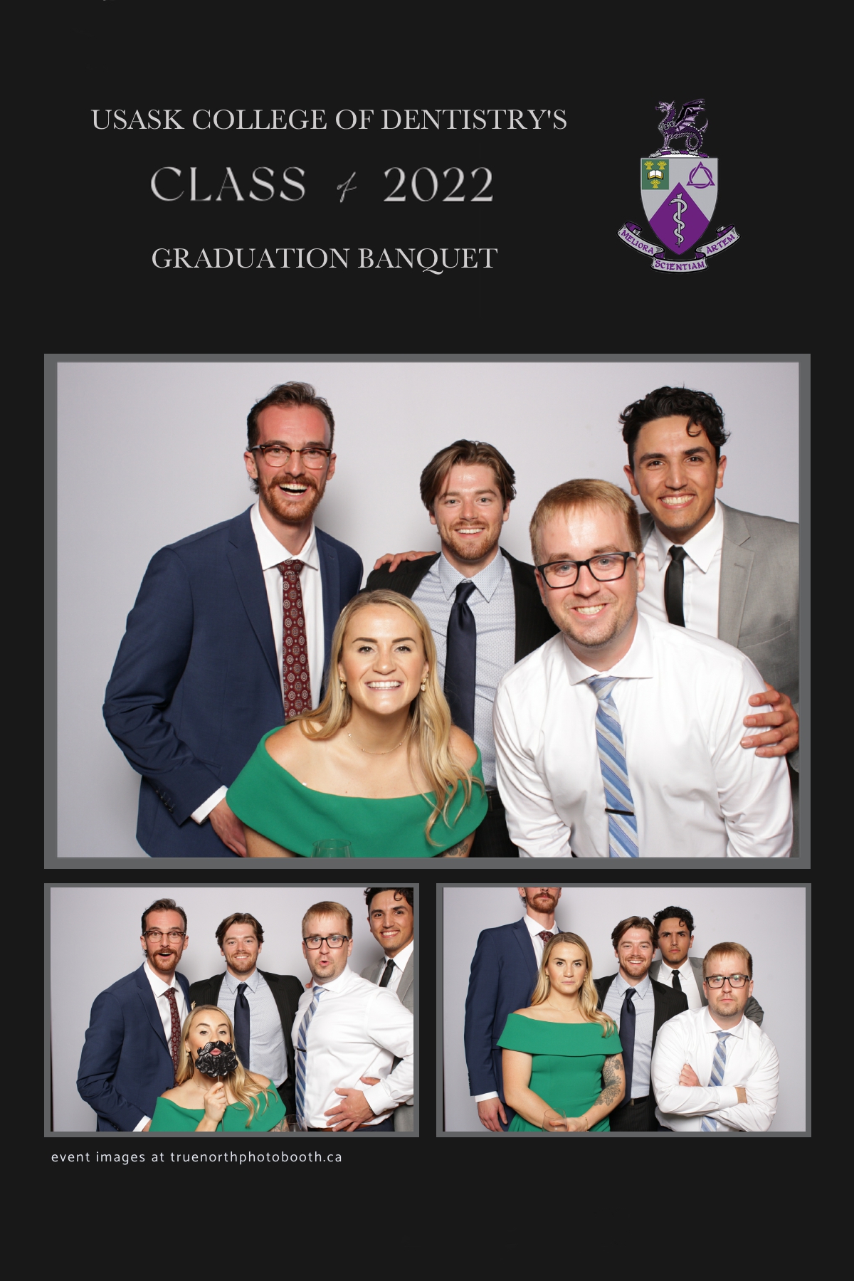 What an exciting night! So many memories made and so much fun was had by all of these grads. Hosted by the amazingly elegant Remai Modern, this was an evening to remember. This group of future dentists held themselves with such class and style. While the paper divider behind them falling, these grads didn’t even let that phase them. They continued to take photo after photo and chose to live in the moment together. Our vertical 4X6 custom strip and our simple white backdrop helped to capture this group as they truly are. It was an absolute privilege to work with this group. Stay classy U of S Dentistry Class of 2022. Your future is as bright as ALL the teeth you are going to help to whiten. All the best in your new season of life!