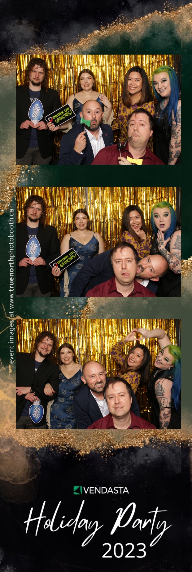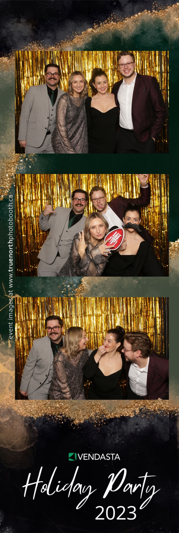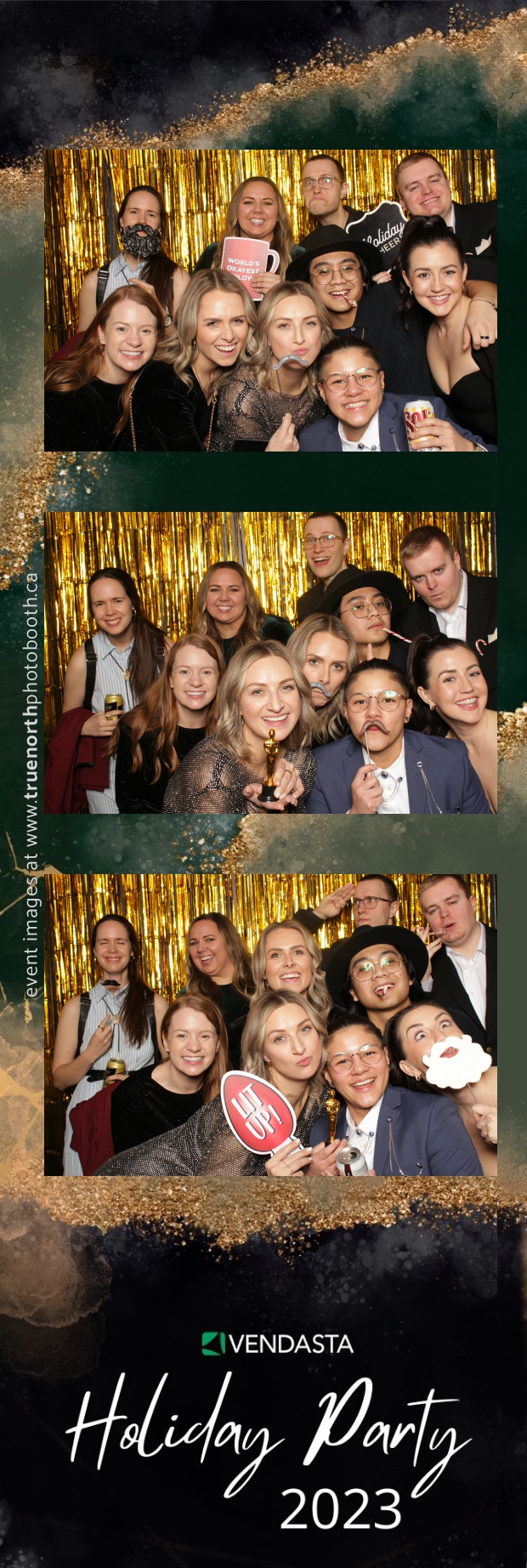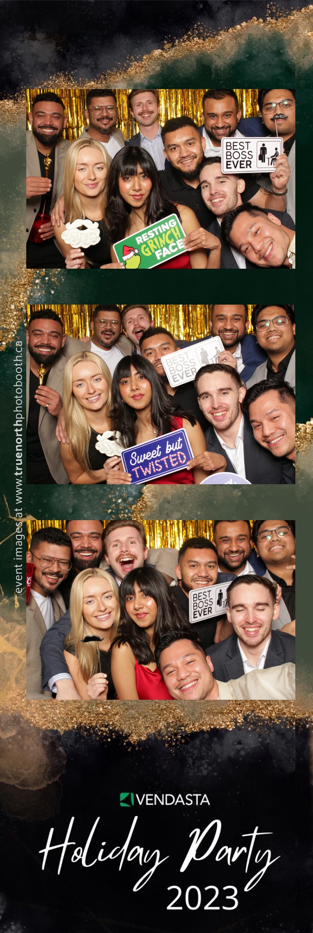 The Vendasta Holiday Party 2023 at the lively Coors Events Centre was a dazzling affair, and True North Photo Booth added an extra dash of sparkle to Vendasta Technologies’ festive celebration. The 2X6 custom photo strips became instant keepsakes, capturing the joy and camaraderie that filled the venue with holiday cheer. Against the backdrop of Vendasta’s own glitzy gold backdrop, every photo was a radiant testament to the success and vibrancy of the company.