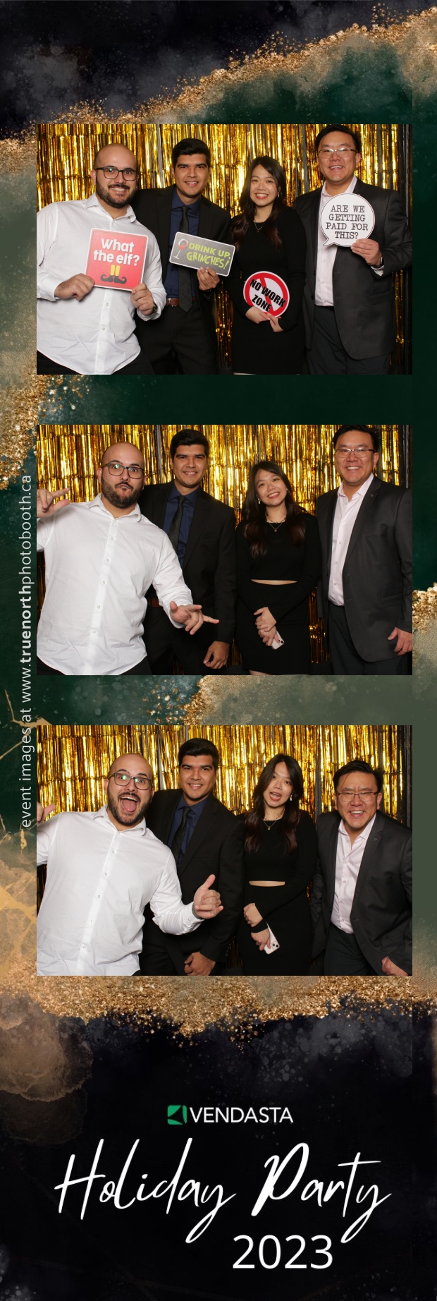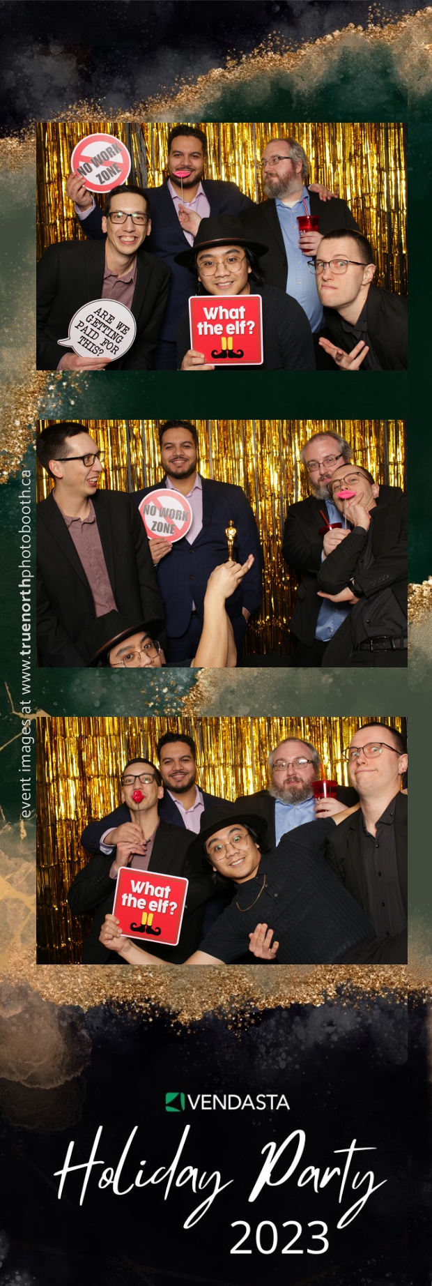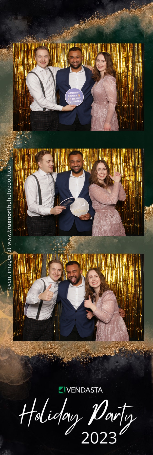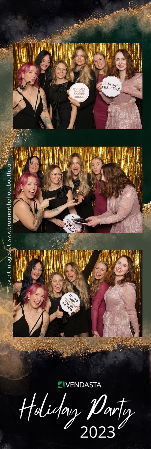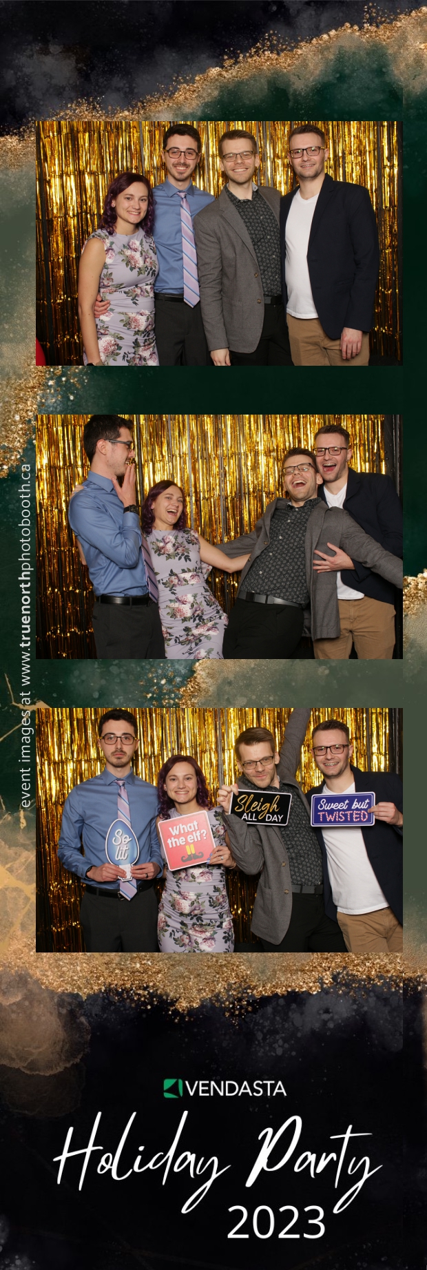 The Vendasta Holiday Party 2023 at the lively Coors Events Centre was a dazzling affair, and True North Photo Booth added an extra dash of sparkle to Vendasta Technologies’ festive celebration. The 2X6 custom photo strips became instant keepsakes, capturing the joy and camaraderie that filled the venue with holiday cheer. Against the backdrop of Vendasta’s own glitzy gold backdrop, every photo was a radiant testament to the success and vibrancy of the company.