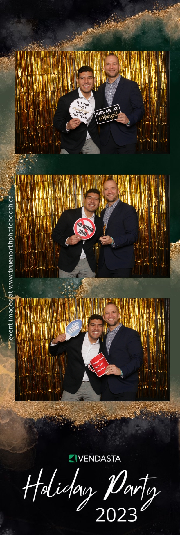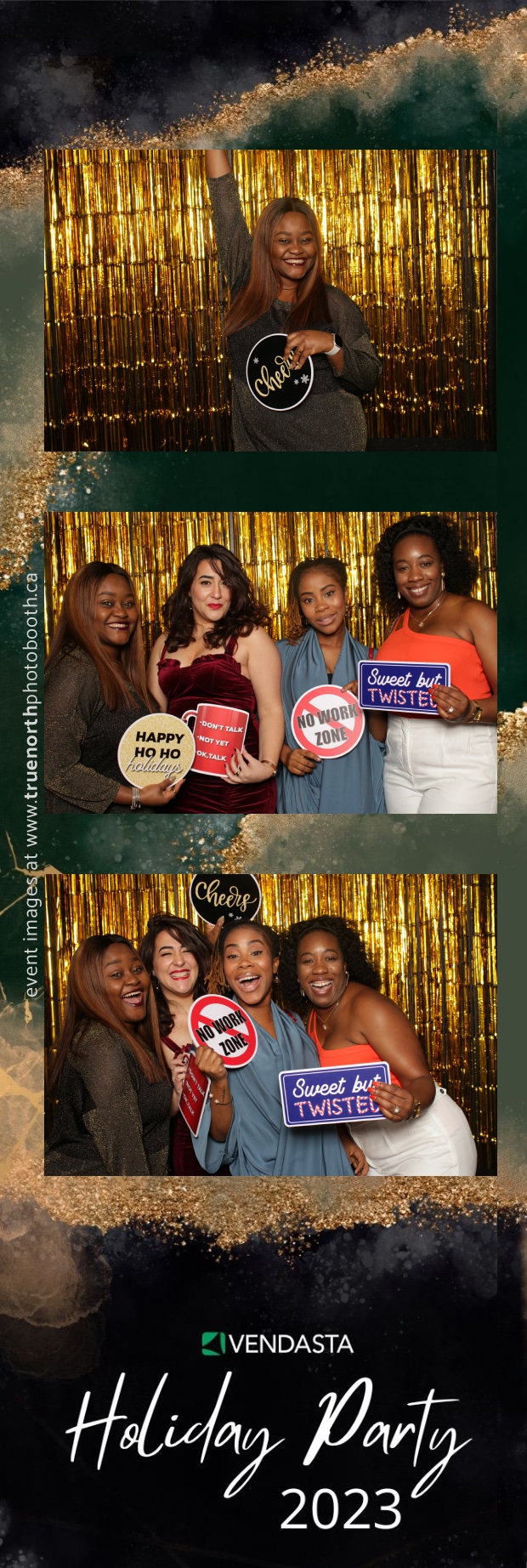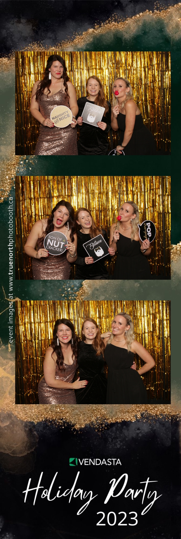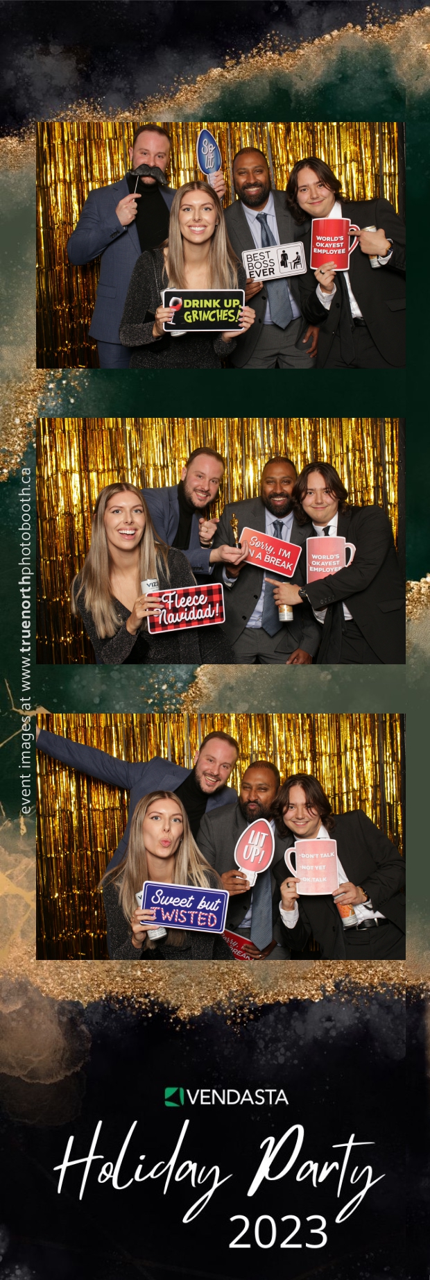 The Vendasta Holiday Party 2023 at the lively Coors Events Centre was a dazzling affair, and True North Photo Booth added an extra dash of sparkle to Vendasta Technologies’ festive celebration. The 2X6 custom photo strips became instant keepsakes, capturing the joy and camaraderie that filled the venue with holiday cheer. Against the backdrop of Vendasta’s own glitzy gold backdrop, every photo was a radiant testament to the success and vibrancy of the company.