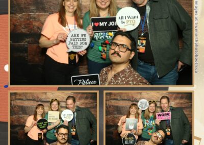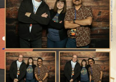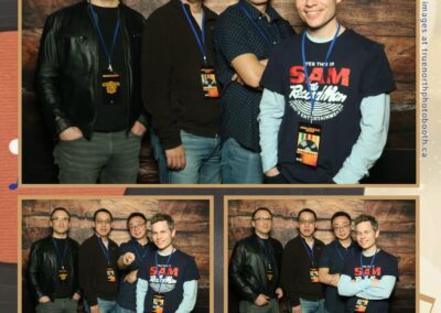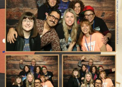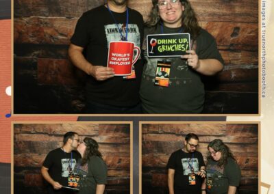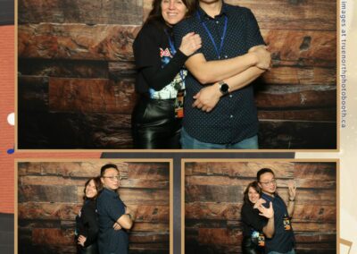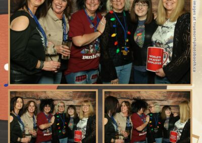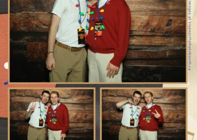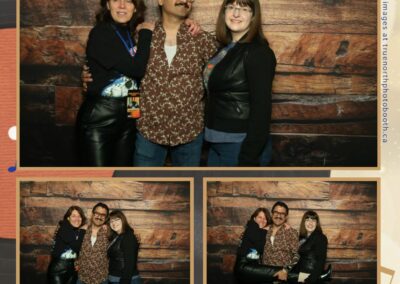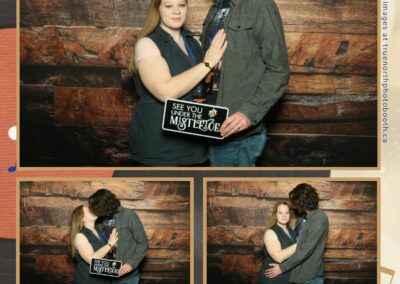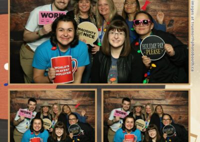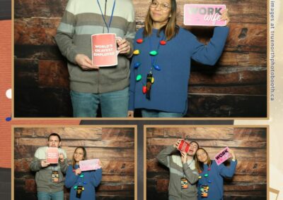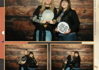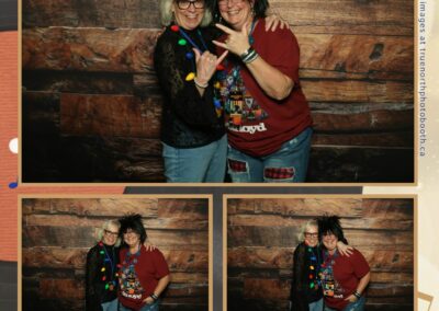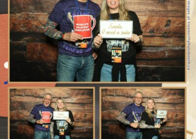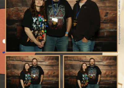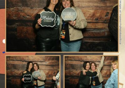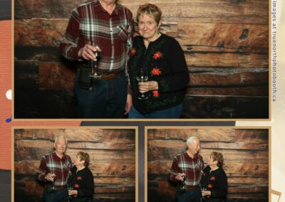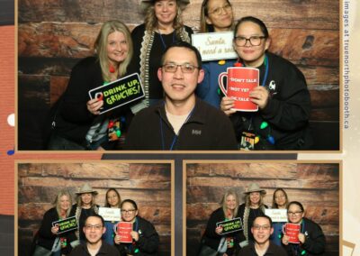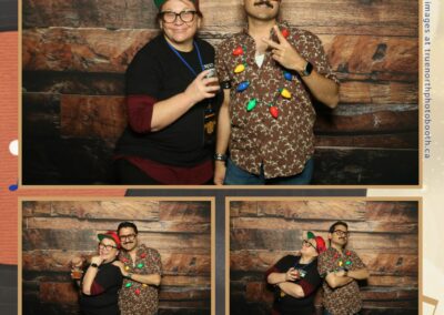 Guests enjoyed capturing the evening’s highlights at the interactive photo booth, featuring 4X6 custom photo strip prints and a cozy barnboard pillow backdrop that added warmth and rustic charm to every photo. The unique setup created wonderful keepsakes, giving everyone something special to take home from this outstanding holiday celebration.