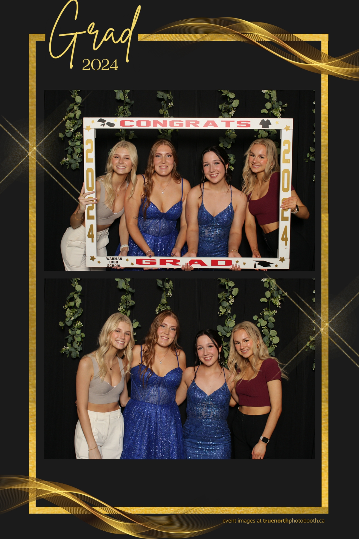 True North Photo Booth was a highlight of the event, providing a fun and interactive experience for all attendees. With a 4X6 custom photo strip and unique backdrops tailored to the graduation theme, everyone had a blast capturing their special moments. The custom backdrops added a personalized touch, perfectly aligning with the celebratory atmosphere of the evening. True North Photo Booth’s presence ensured that guests left with cherished keepsakes, enhancing the overall experience and making the Warman Graduation 2024 an unforgettable celebration.