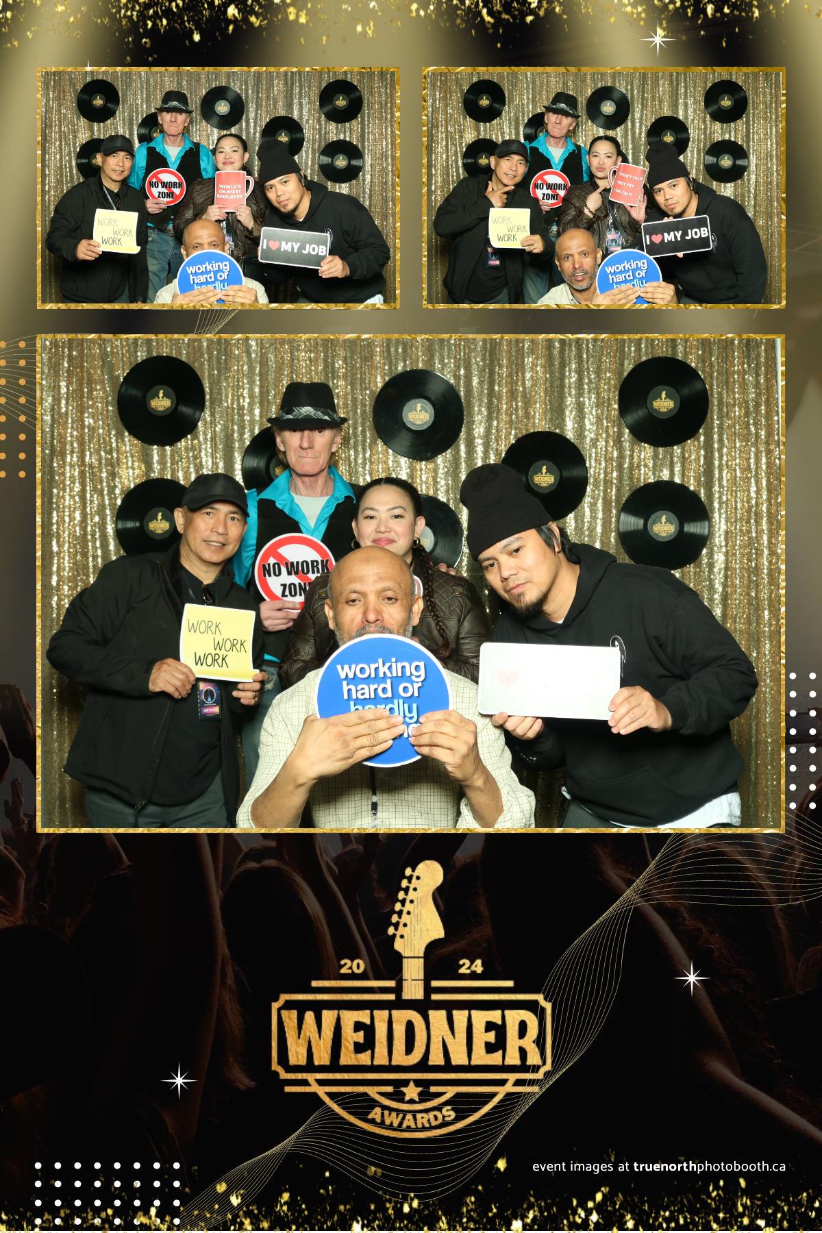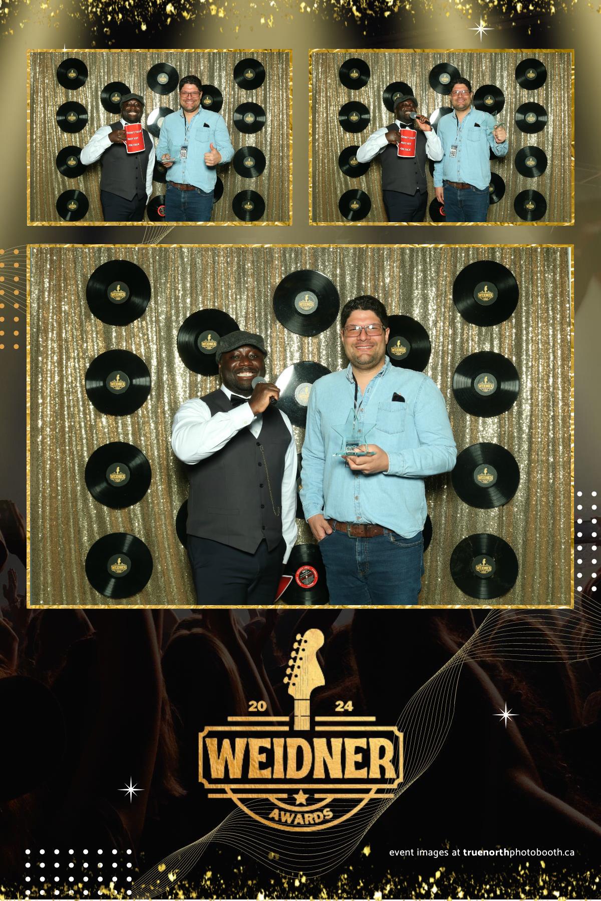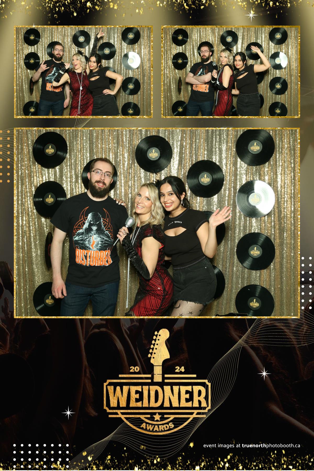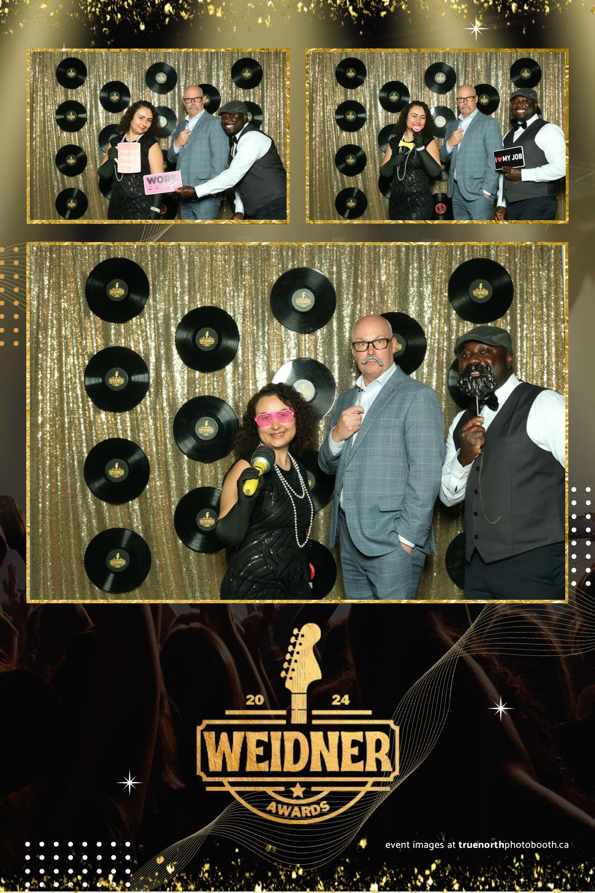 True North Photo Booth’s exceptional service was a highlight of the Weidner Awards 2024. The seamless setup and professional staff ensured that the photo booth experience was both enjoyable and effortless for all attendees. The custom gold sequin backdrop, combined with the unique suspended records, created a visually stunning background for the photos. The 4X6 custom photo strips provided by True North Photo Booth not only captured the essence of the evening but also served as cherished keepsakes for everyone who attended. This event showcased the perfect blend of recognition, celebration, and entertainment, making the Weidner Awards 2024 an unforgettable night for all.