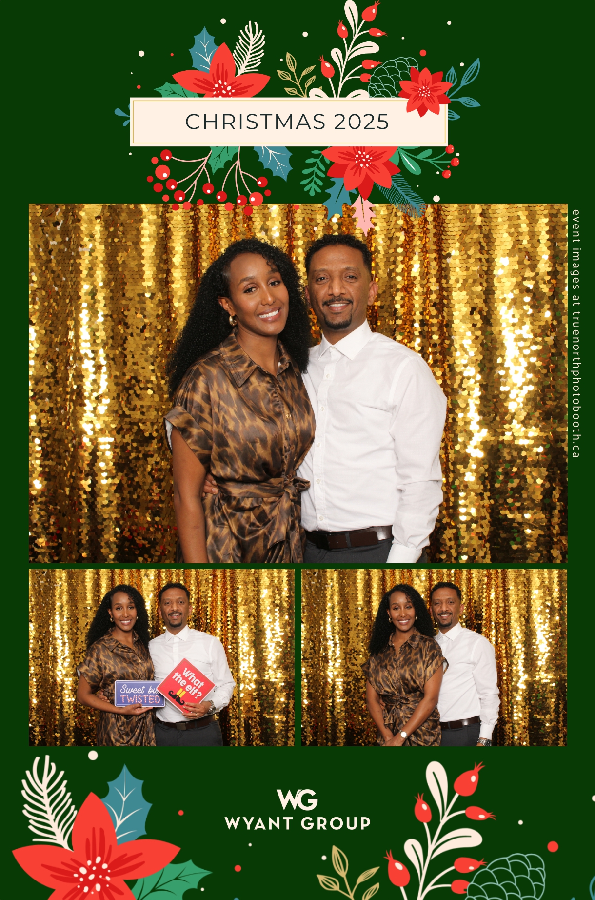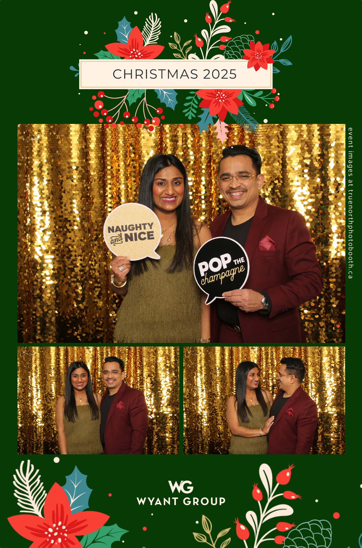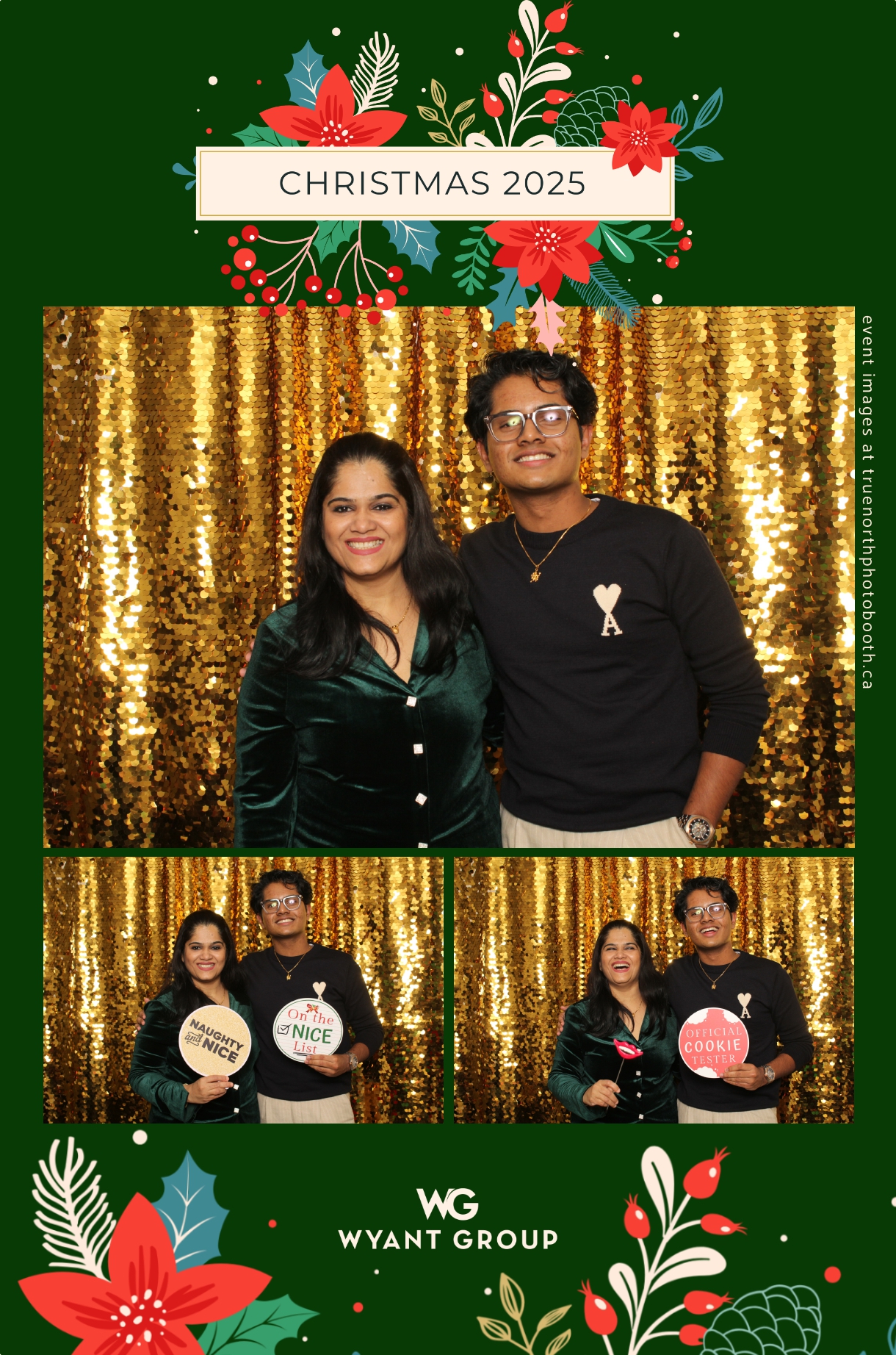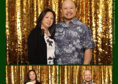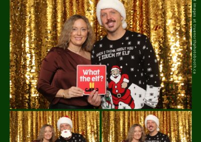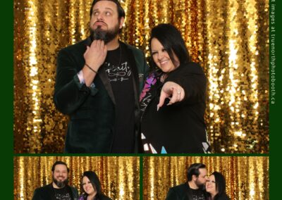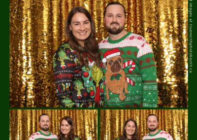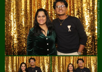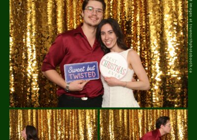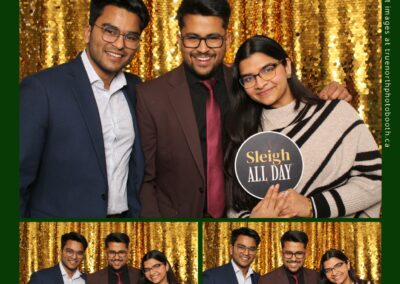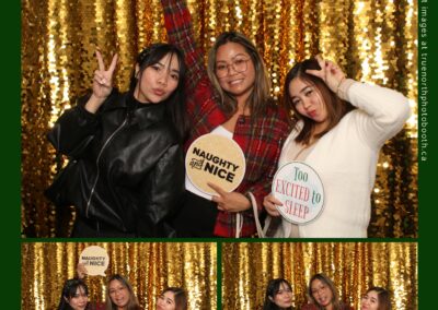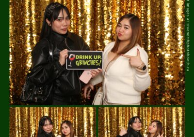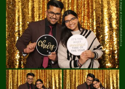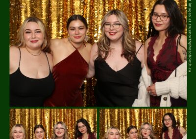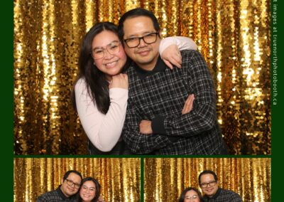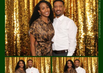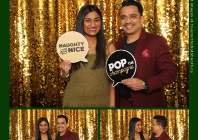 Guests enjoyed capturing memories at the interactive photo booth, featuring elegant 4X6 custom photo strips and a dazzling gold sequin backdrop. The glamorous setup added a celebratory sparkle to the evening, giving attendees memorable keepsakes to take home and cherish long after the holiday festivities ended.