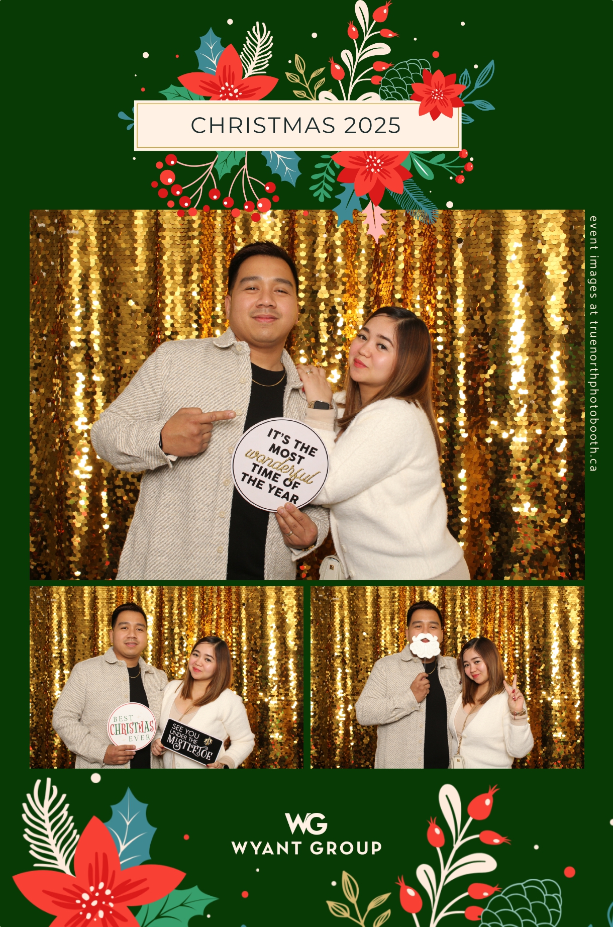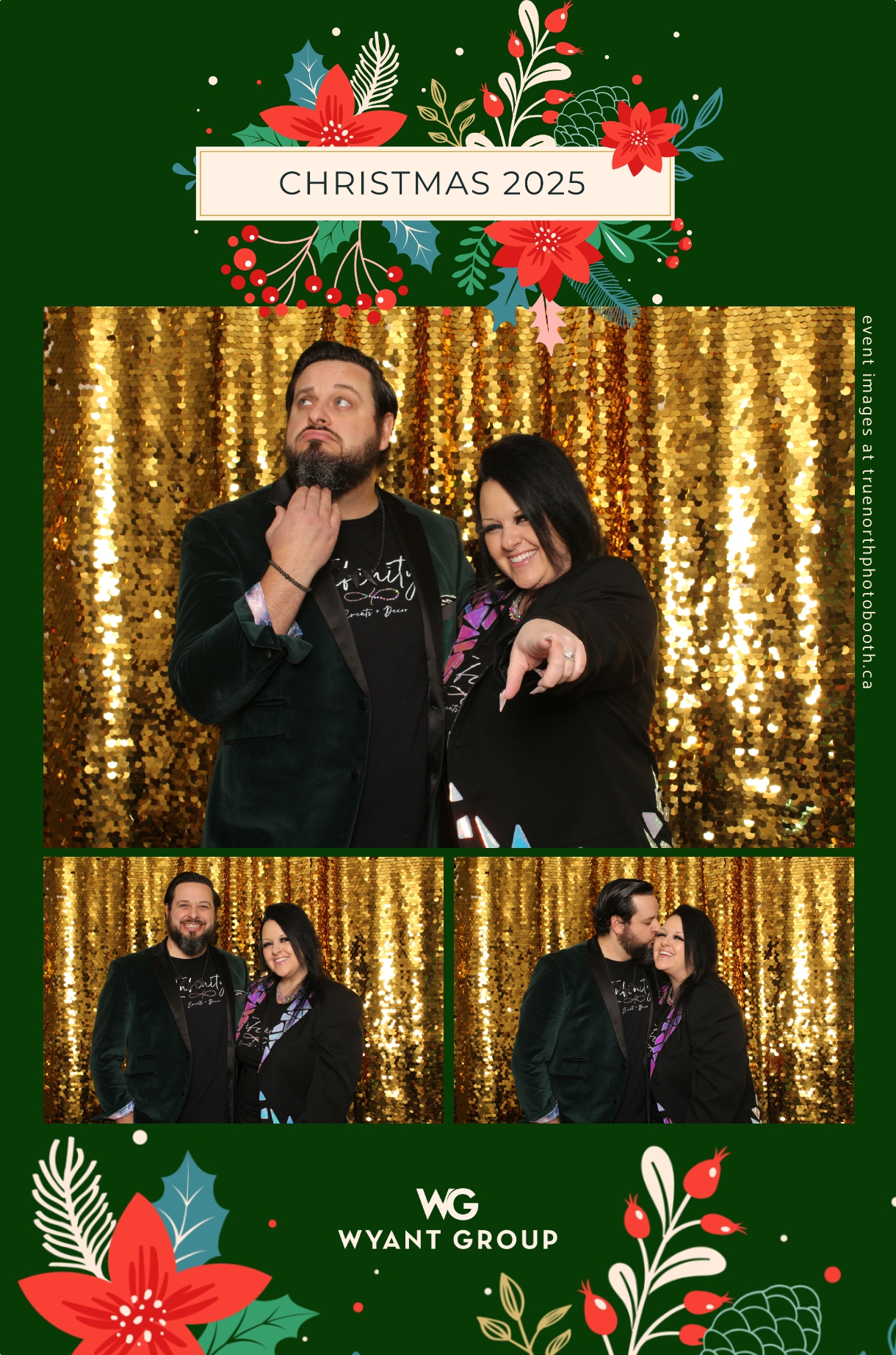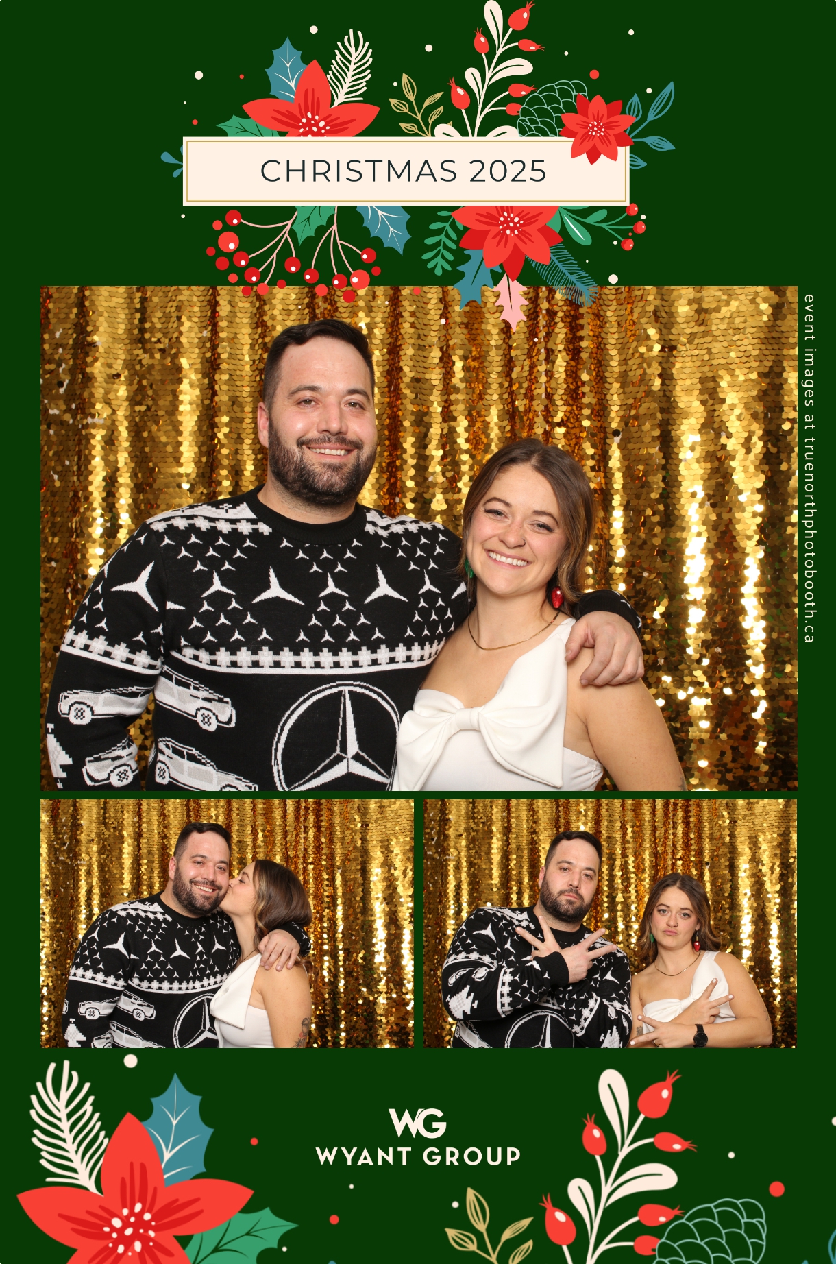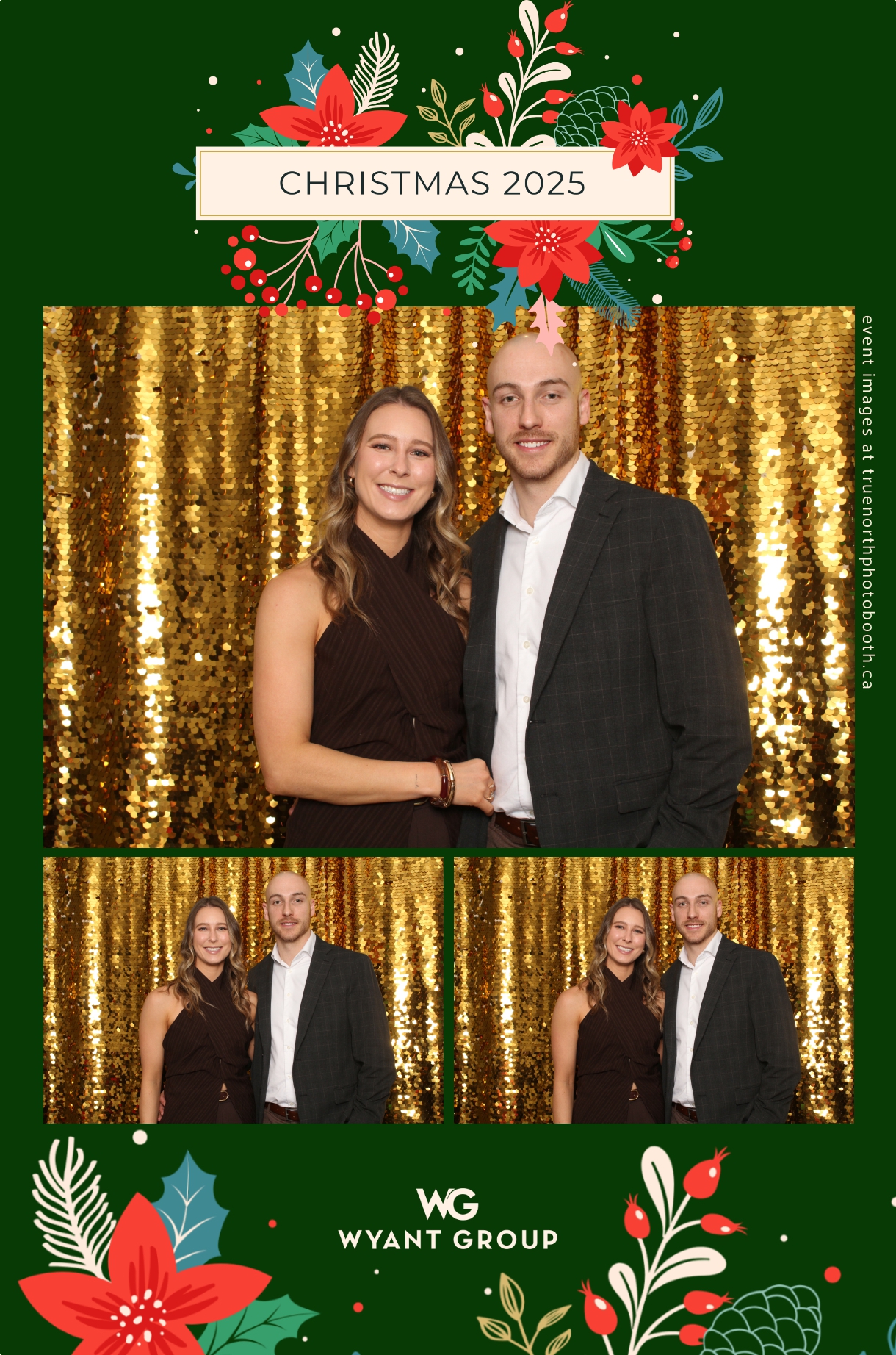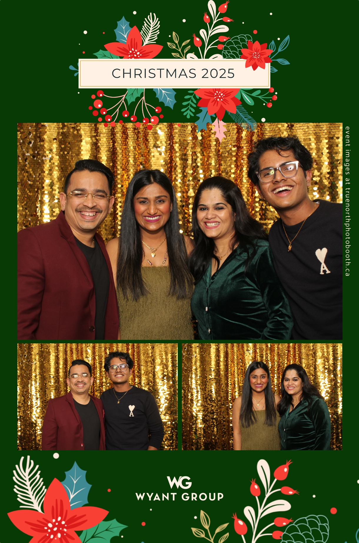 Guests enjoyed capturing memories at the interactive photo booth, featuring elegant 4X6 custom photo strips and a dazzling gold sequin backdrop. The glamorous setup added a celebratory sparkle to the evening, giving attendees memorable keepsakes to take home and cherish long after the holiday festivities ended.