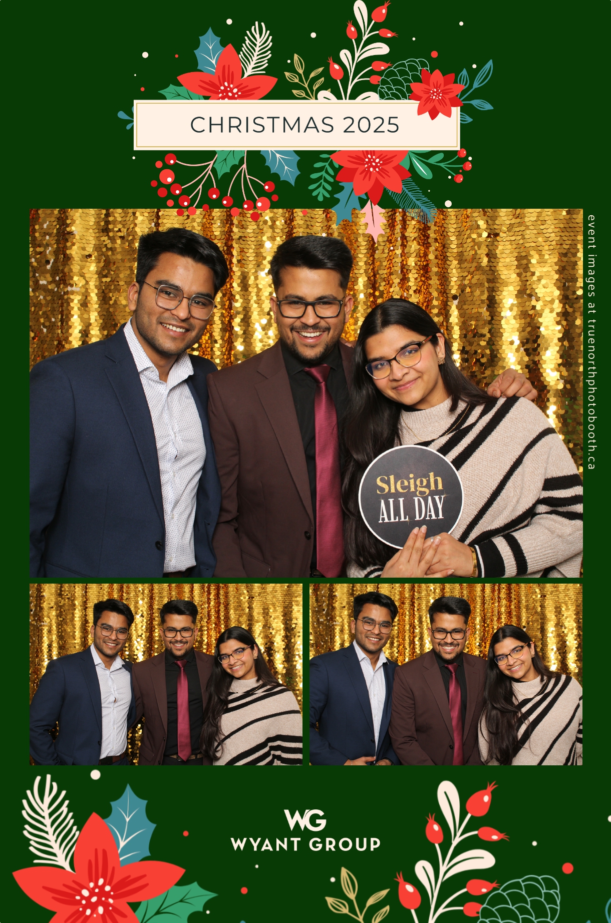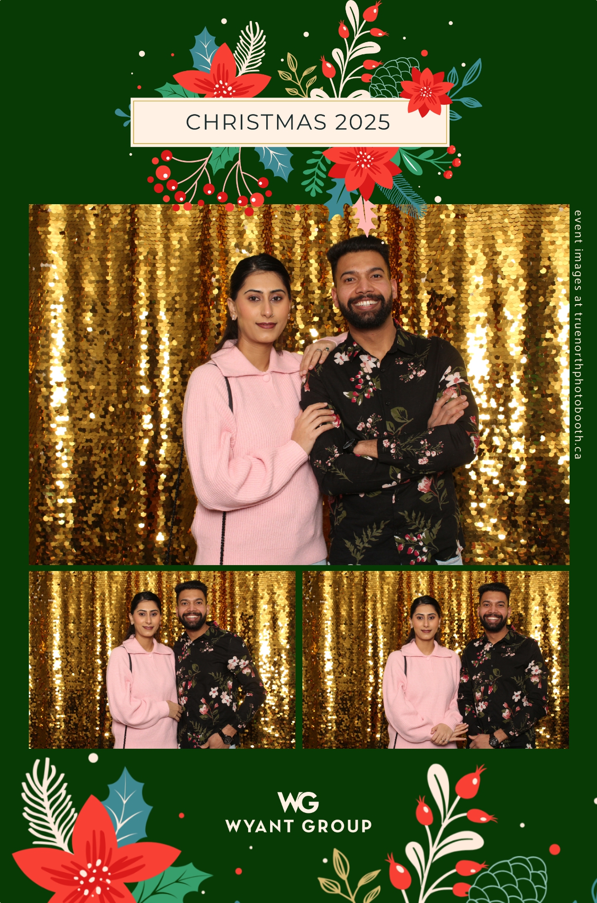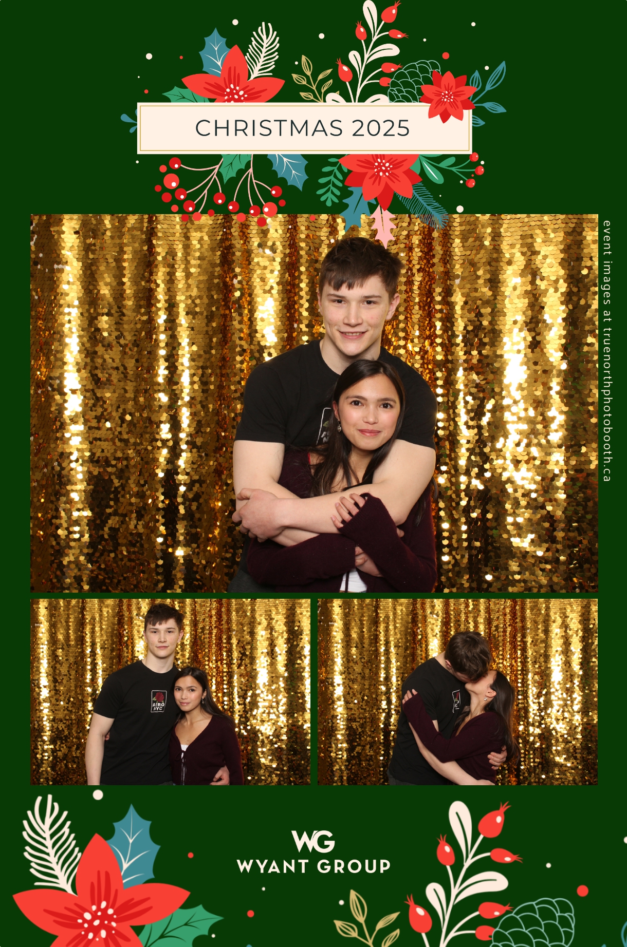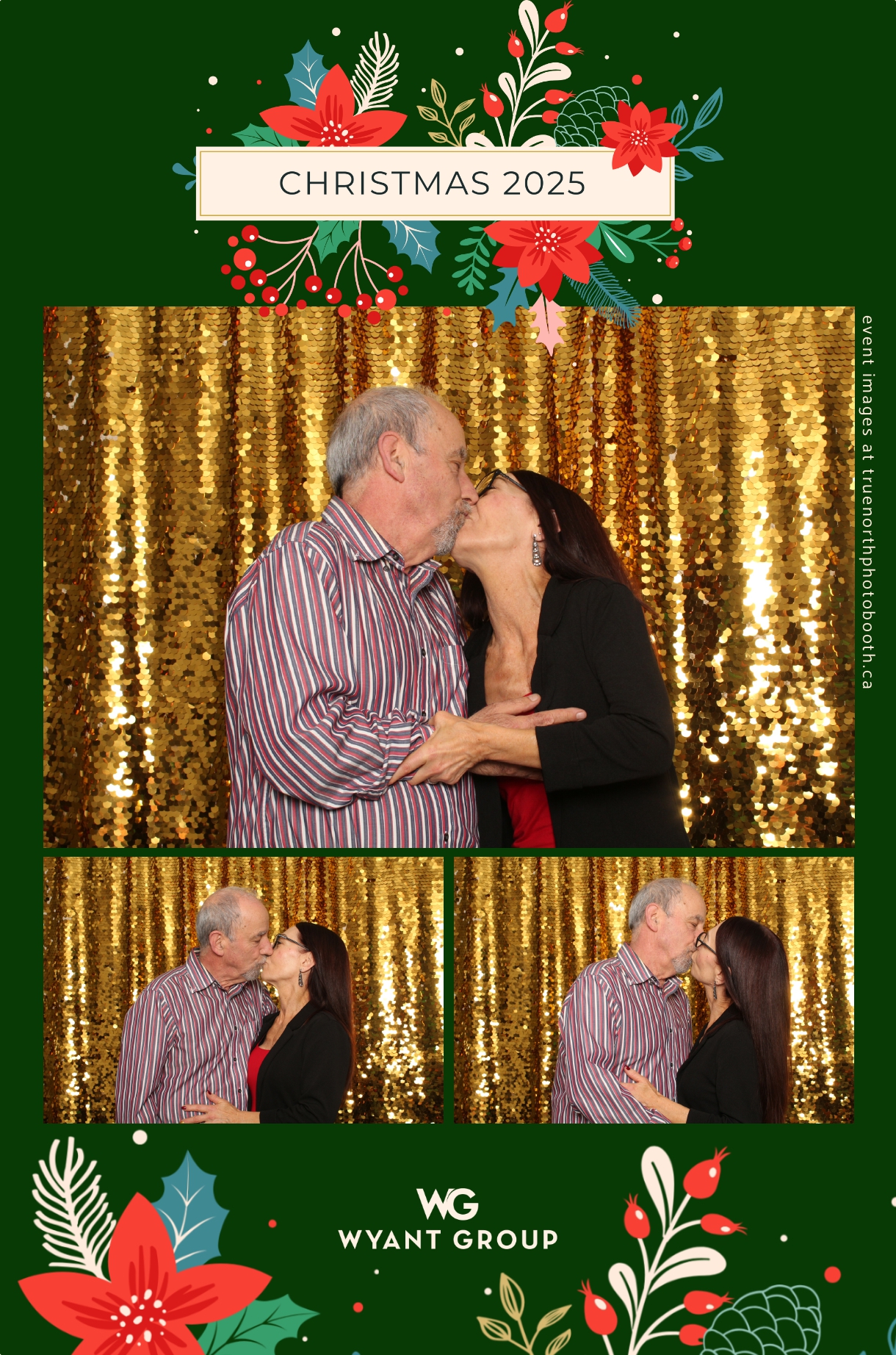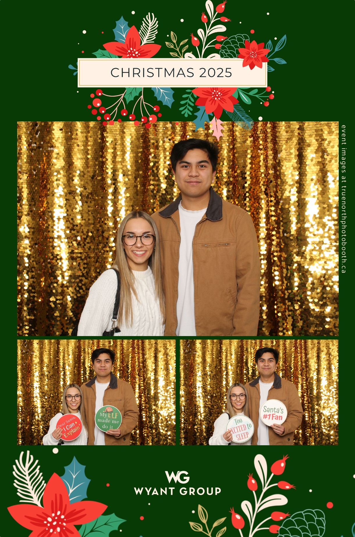 Guests enjoyed capturing memories at the interactive photo booth, featuring elegant 4X6 custom photo strips and a dazzling gold sequin backdrop. The glamorous setup added a celebratory sparkle to the evening, giving attendees memorable keepsakes to take home and cherish long after the holiday festivities ended.