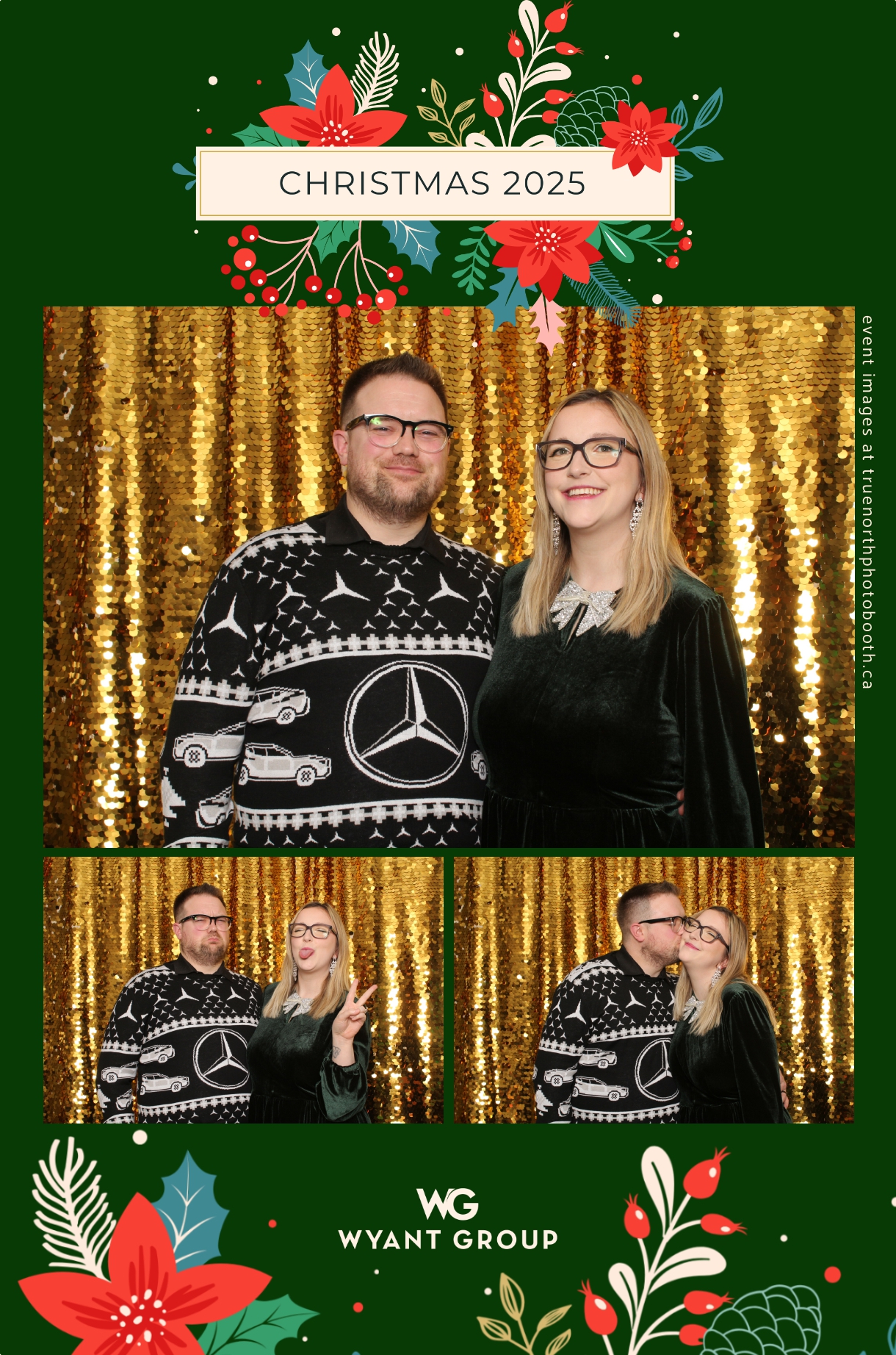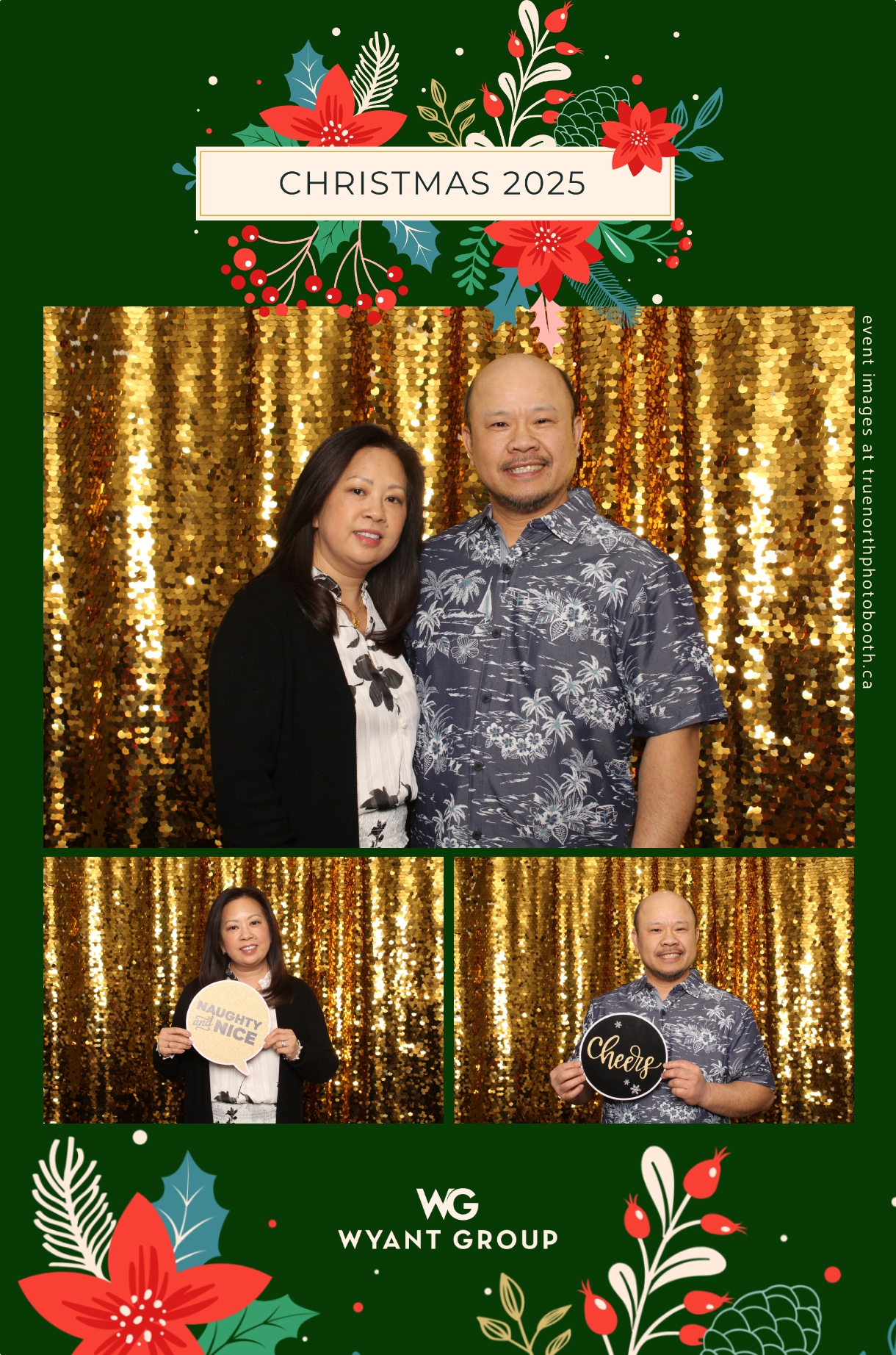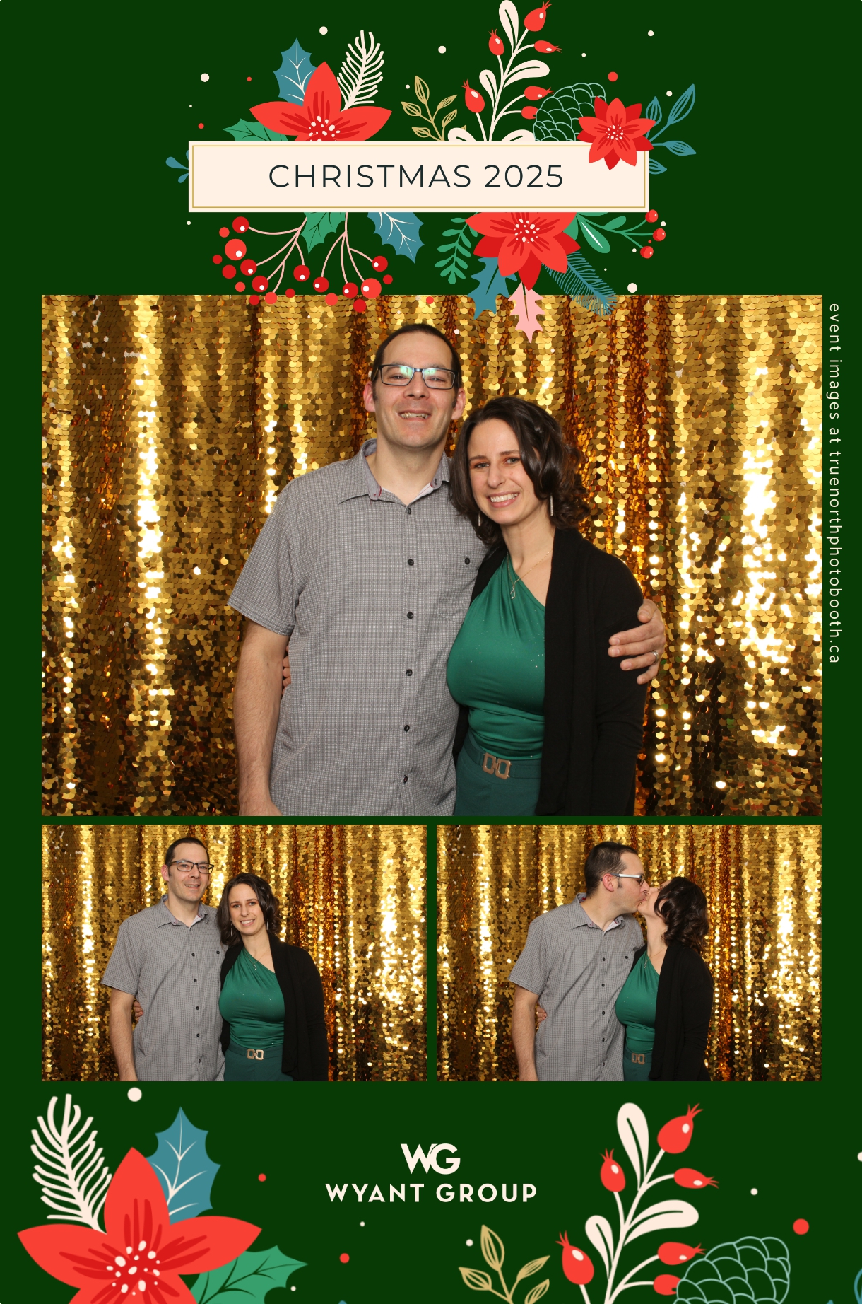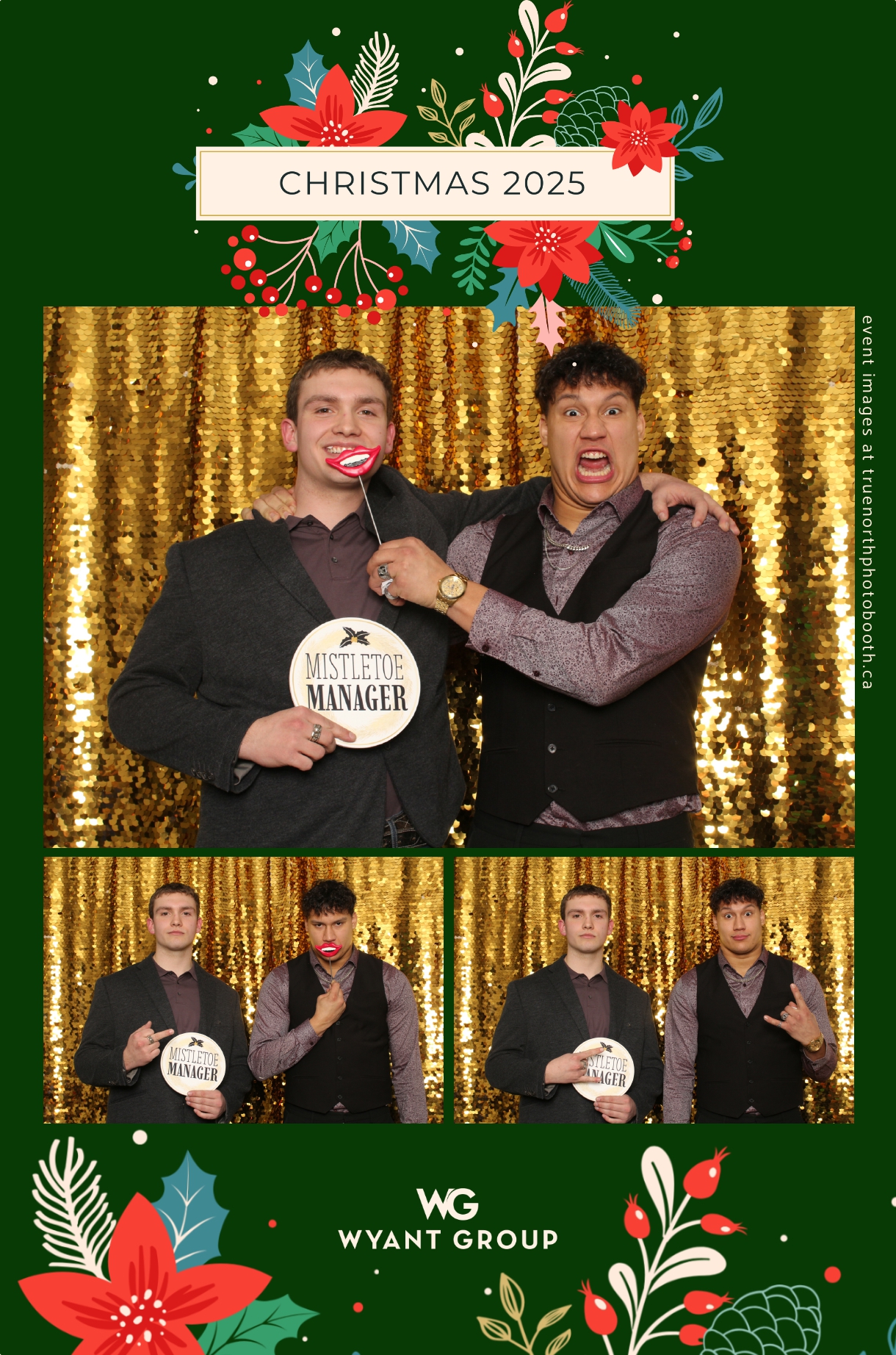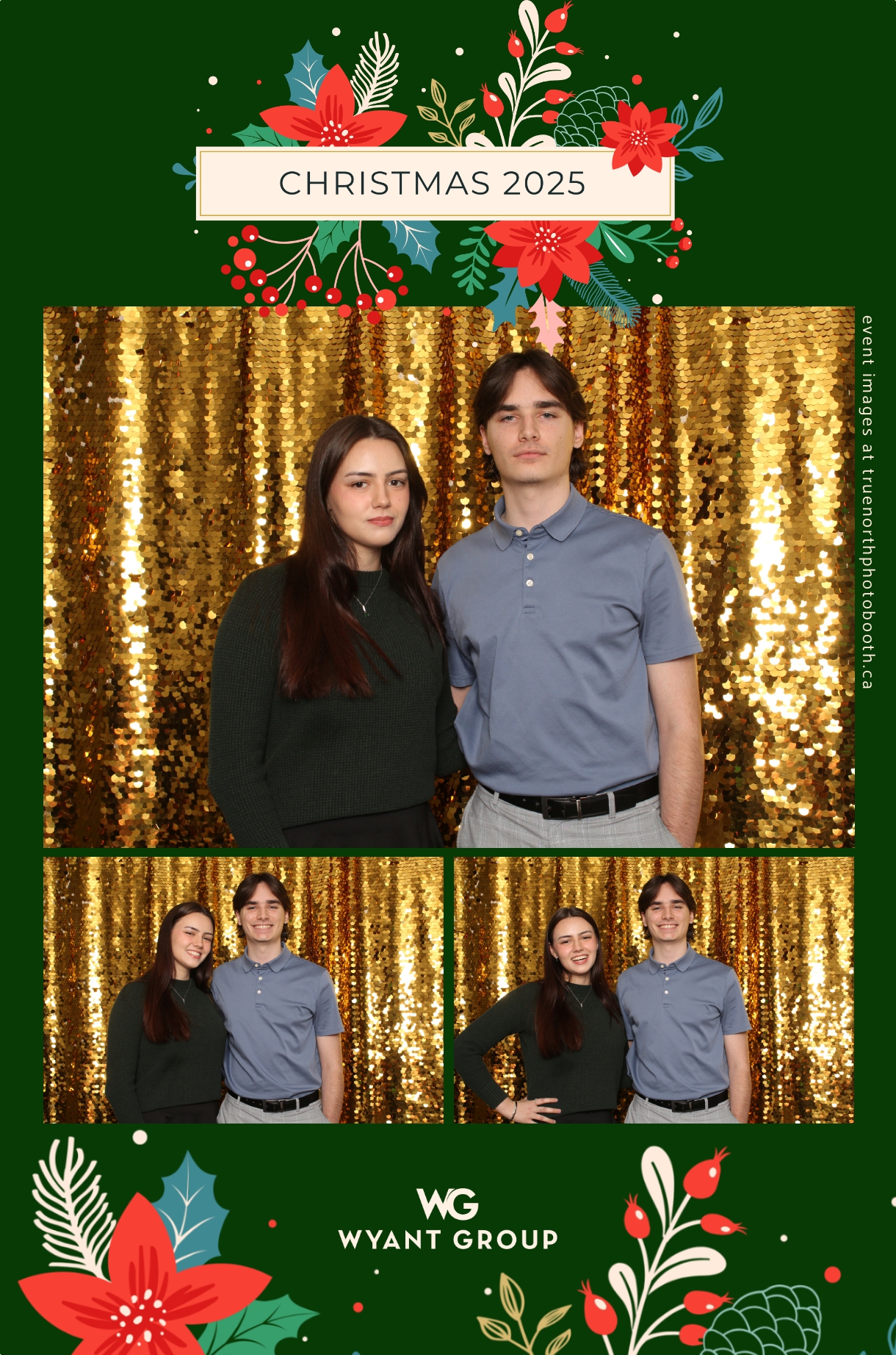 Guests enjoyed capturing memories at the interactive photo booth, featuring elegant 4X6 custom photo strips and a dazzling gold sequin backdrop. The glamorous setup added a celebratory sparkle to the evening, giving attendees memorable keepsakes to take home and cherish long after the holiday festivities ended.