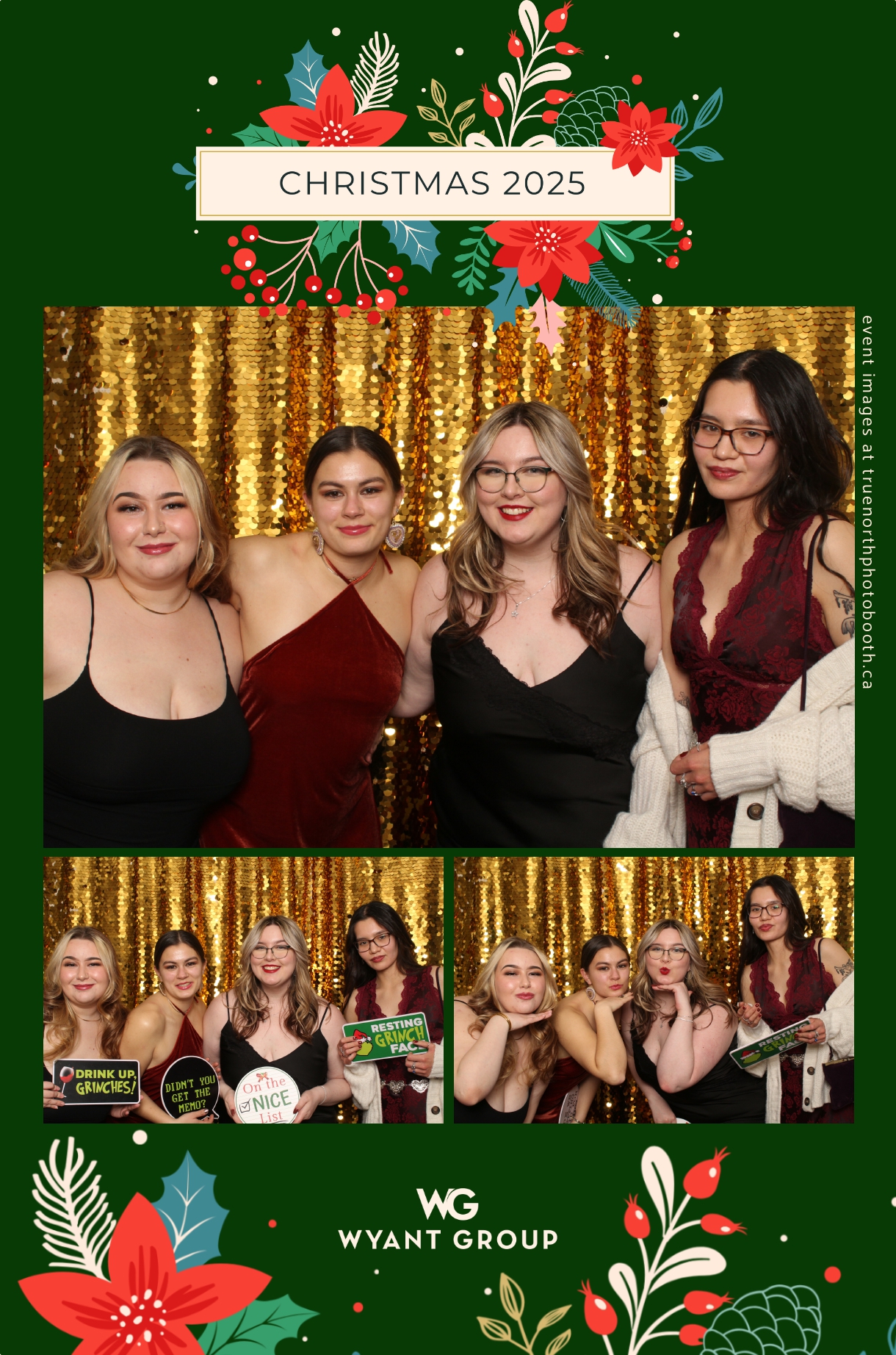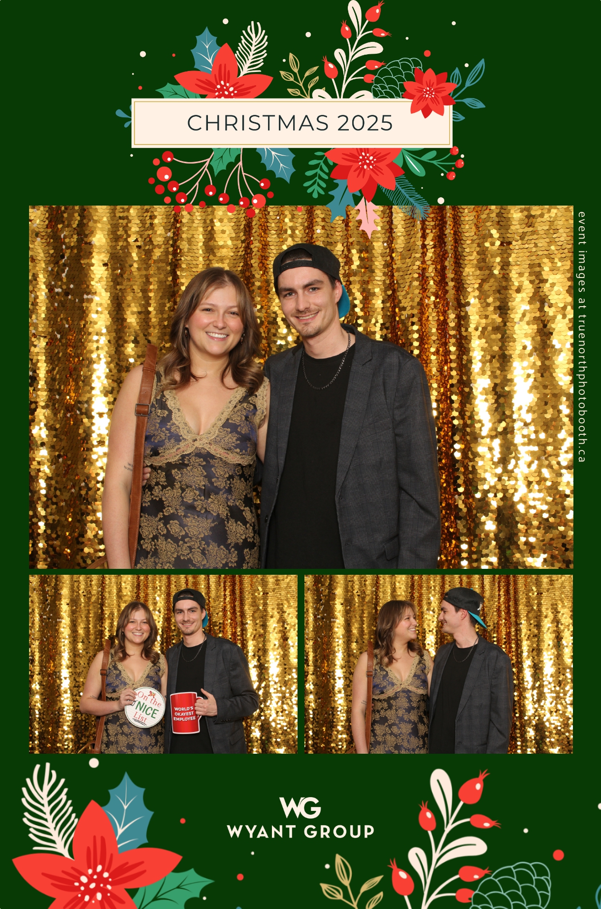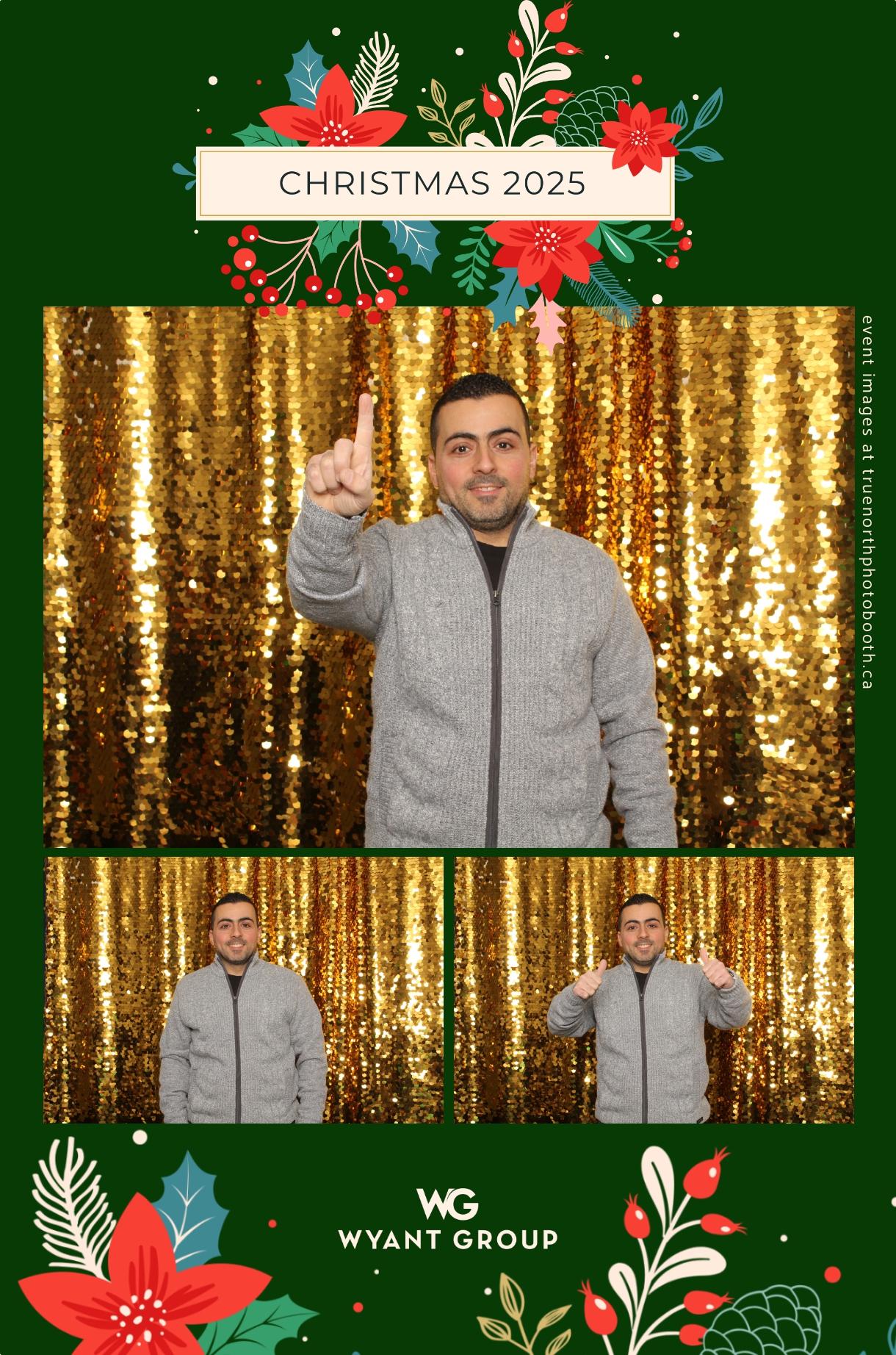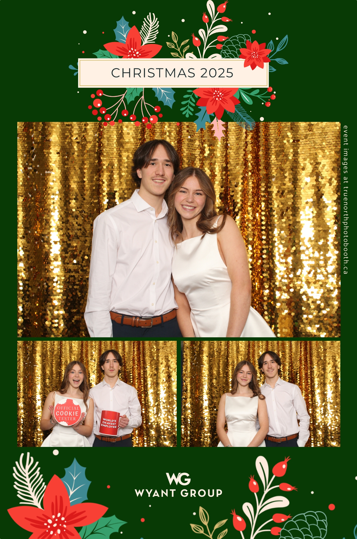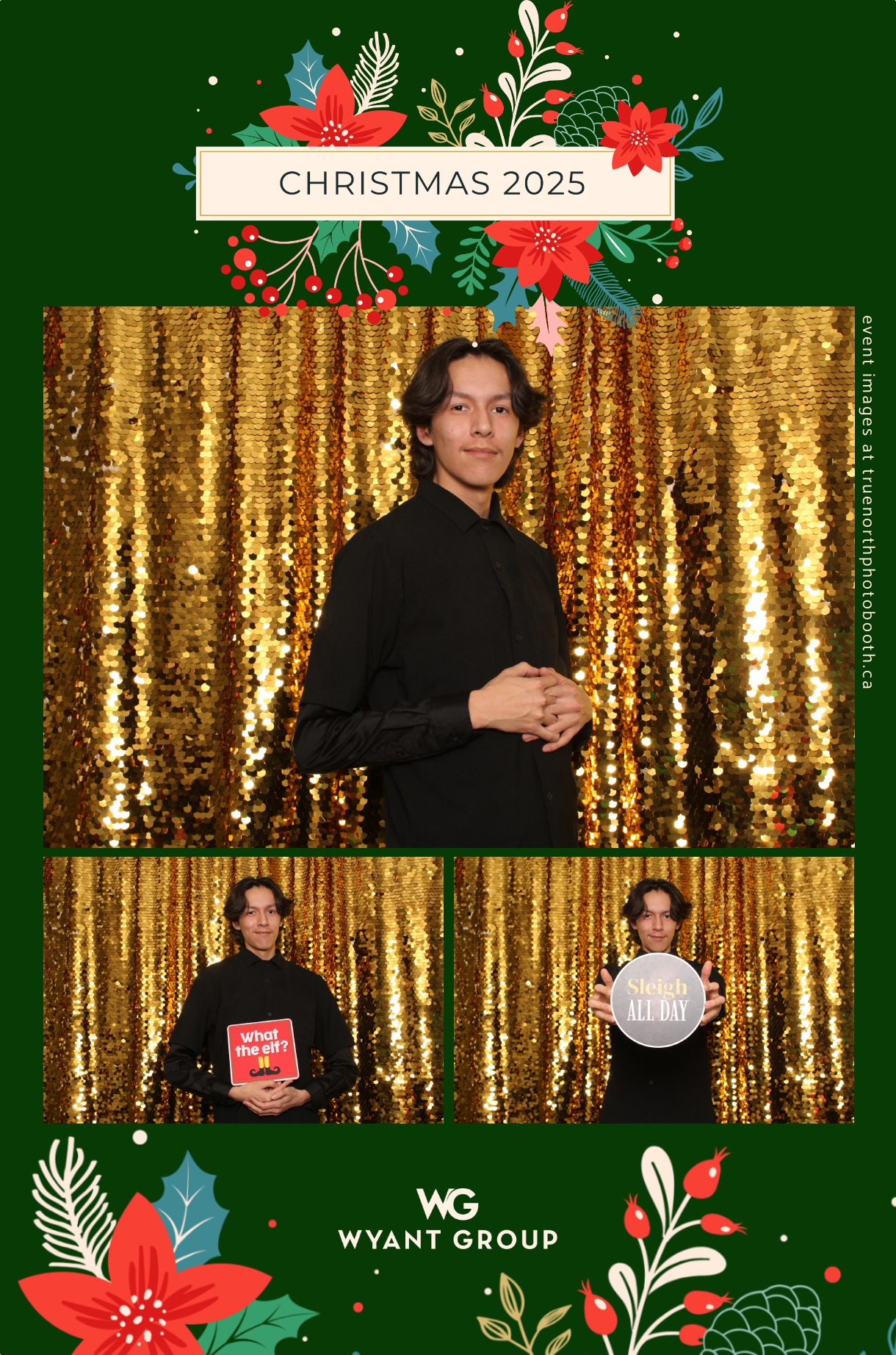 Guests enjoyed capturing memories at the interactive photo booth, featuring elegant 4X6 custom photo strips and a dazzling gold sequin backdrop. The glamorous setup added a celebratory sparkle to the evening, giving attendees memorable keepsakes to take home and cherish long after the holiday festivities ended.