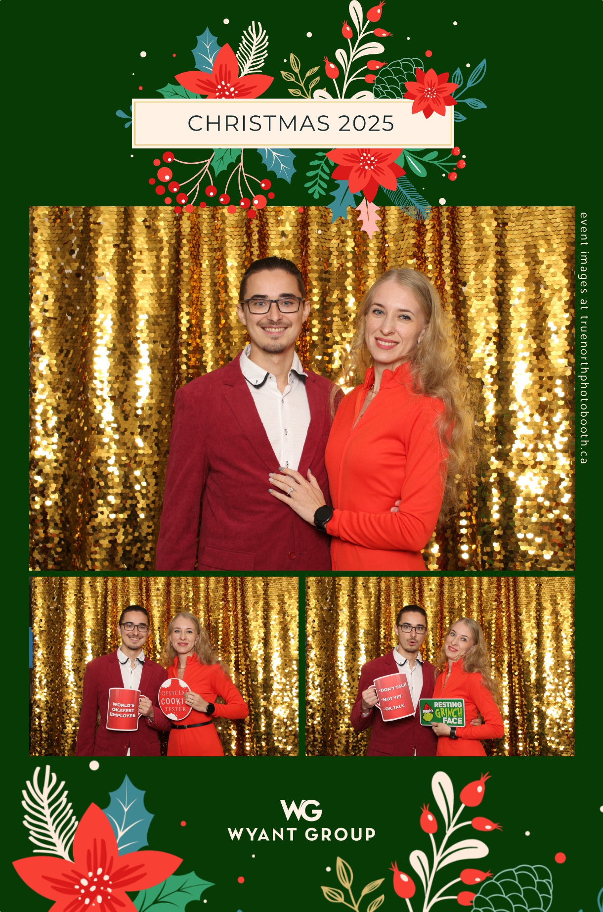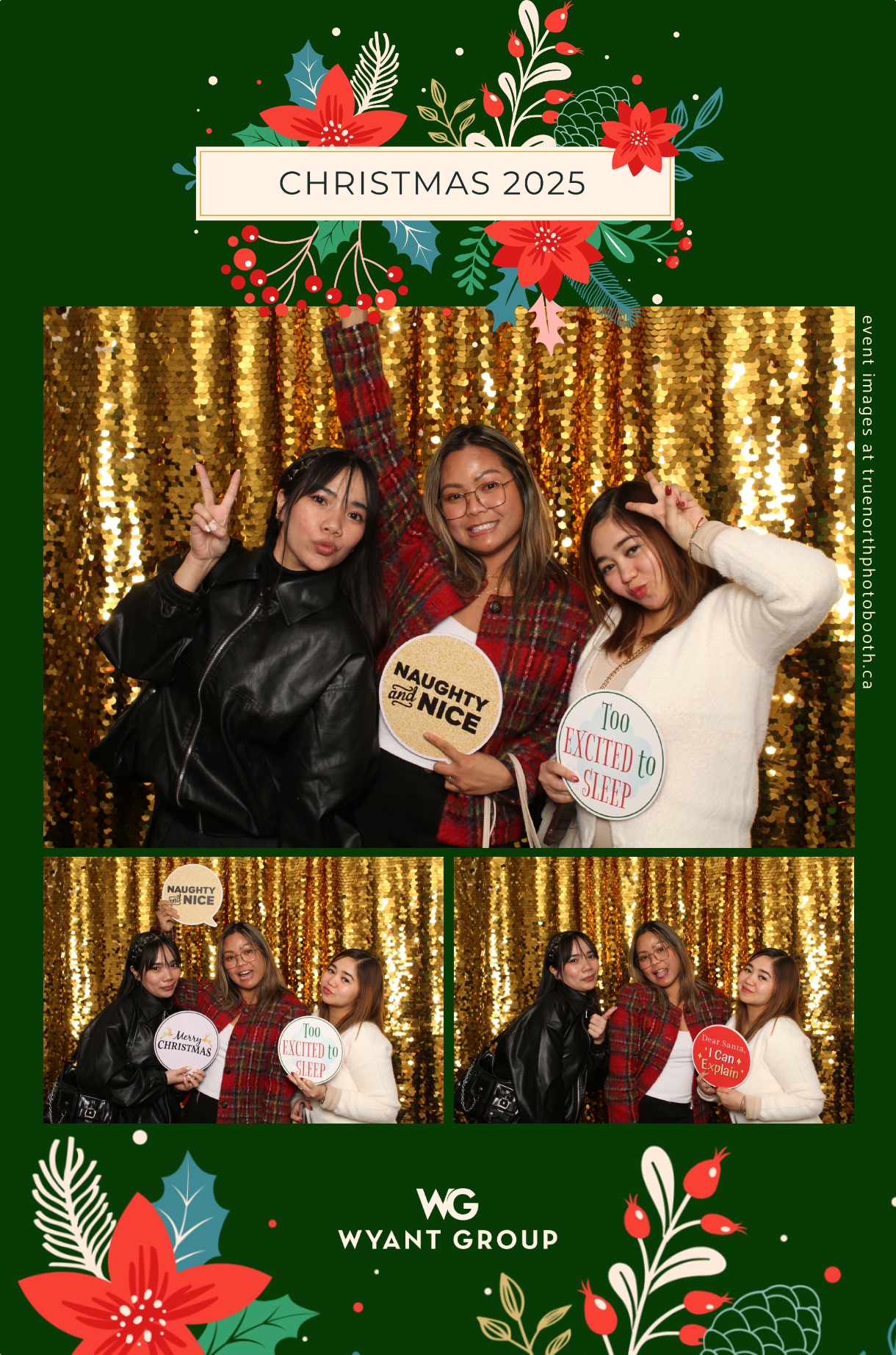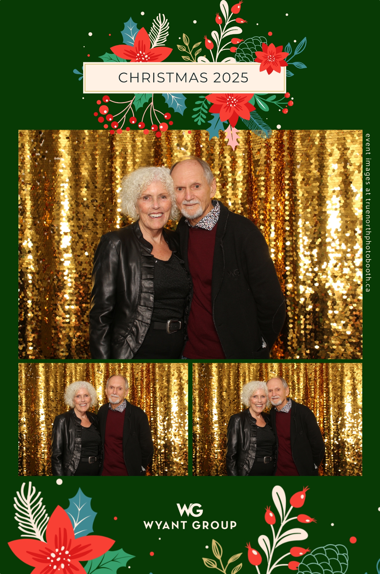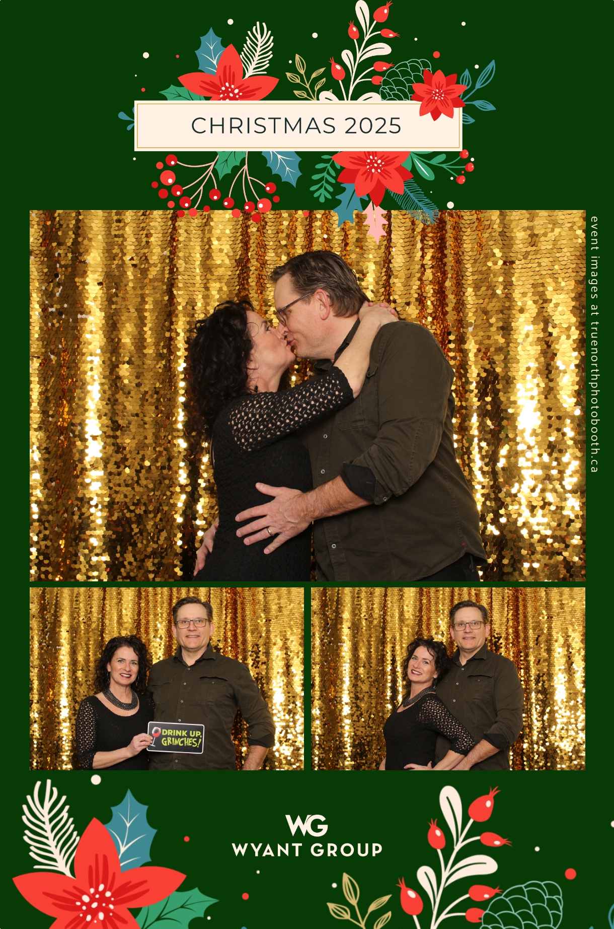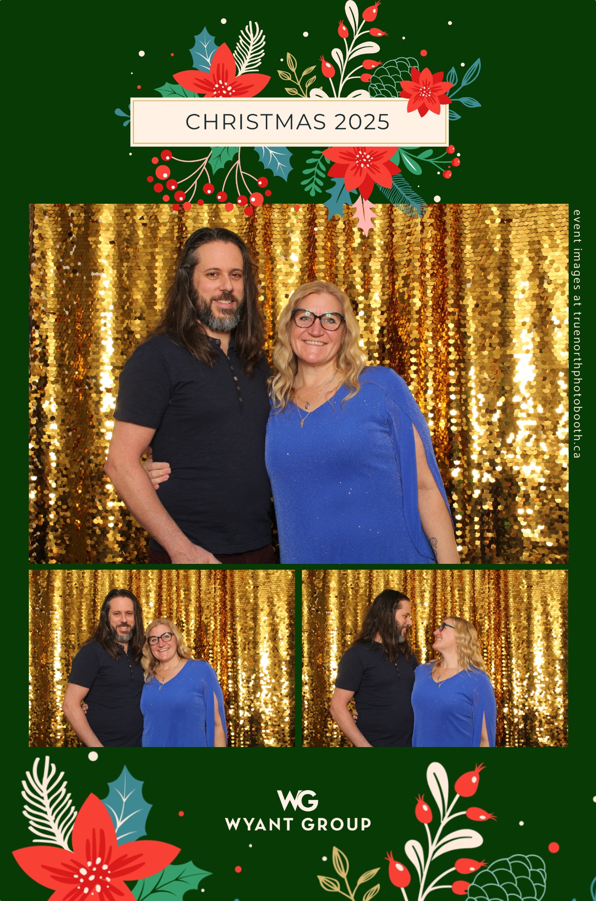 Guests enjoyed capturing memories at the interactive photo booth, featuring elegant 4X6 custom photo strips and a dazzling gold sequin backdrop. The glamorous setup added a celebratory sparkle to the evening, giving attendees memorable keepsakes to take home and cherish long after the holiday festivities ended.