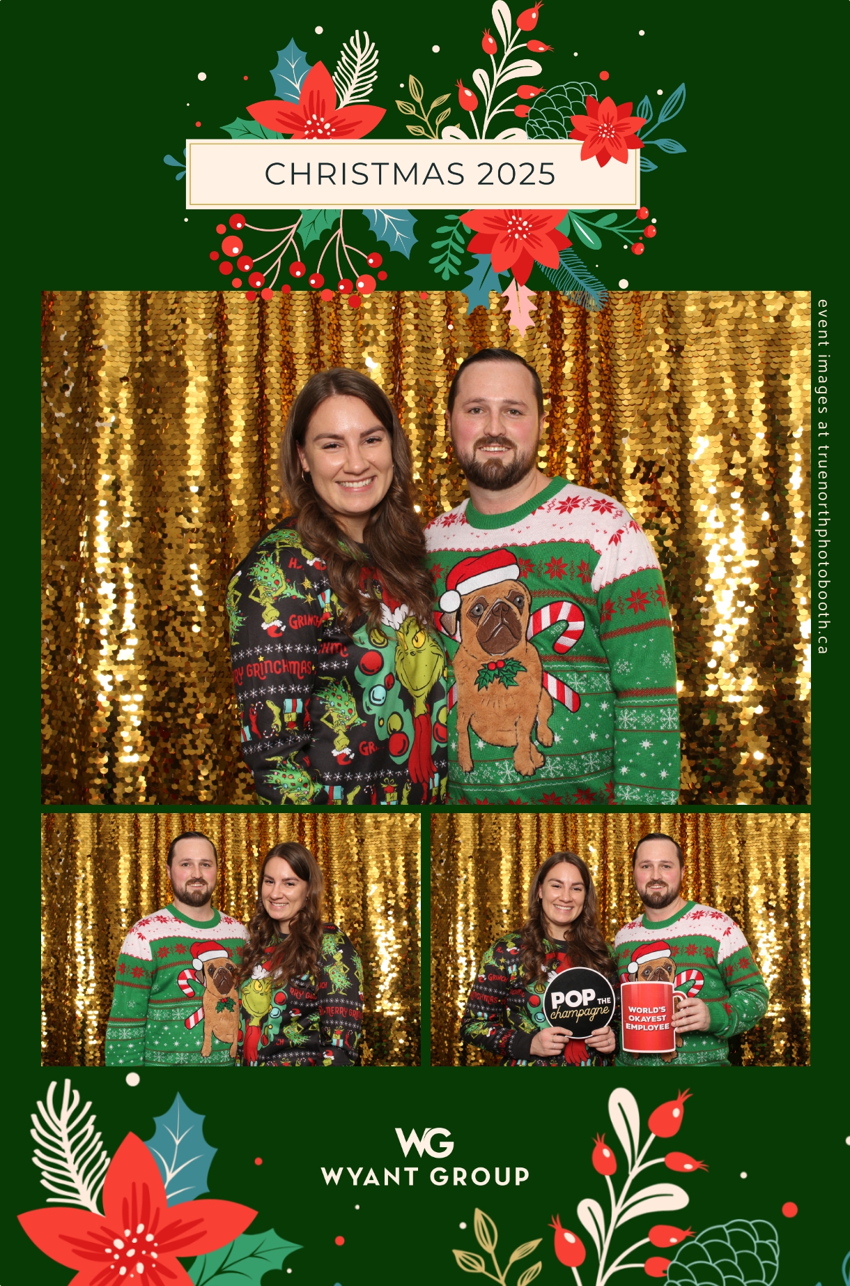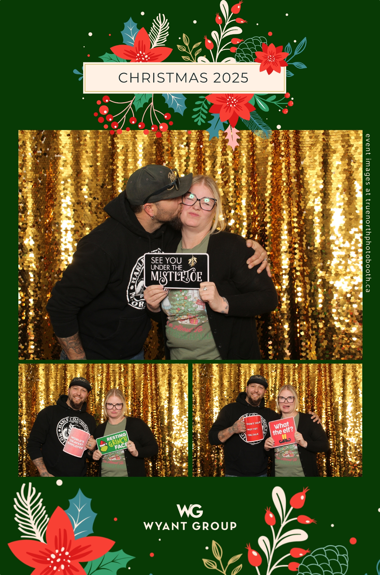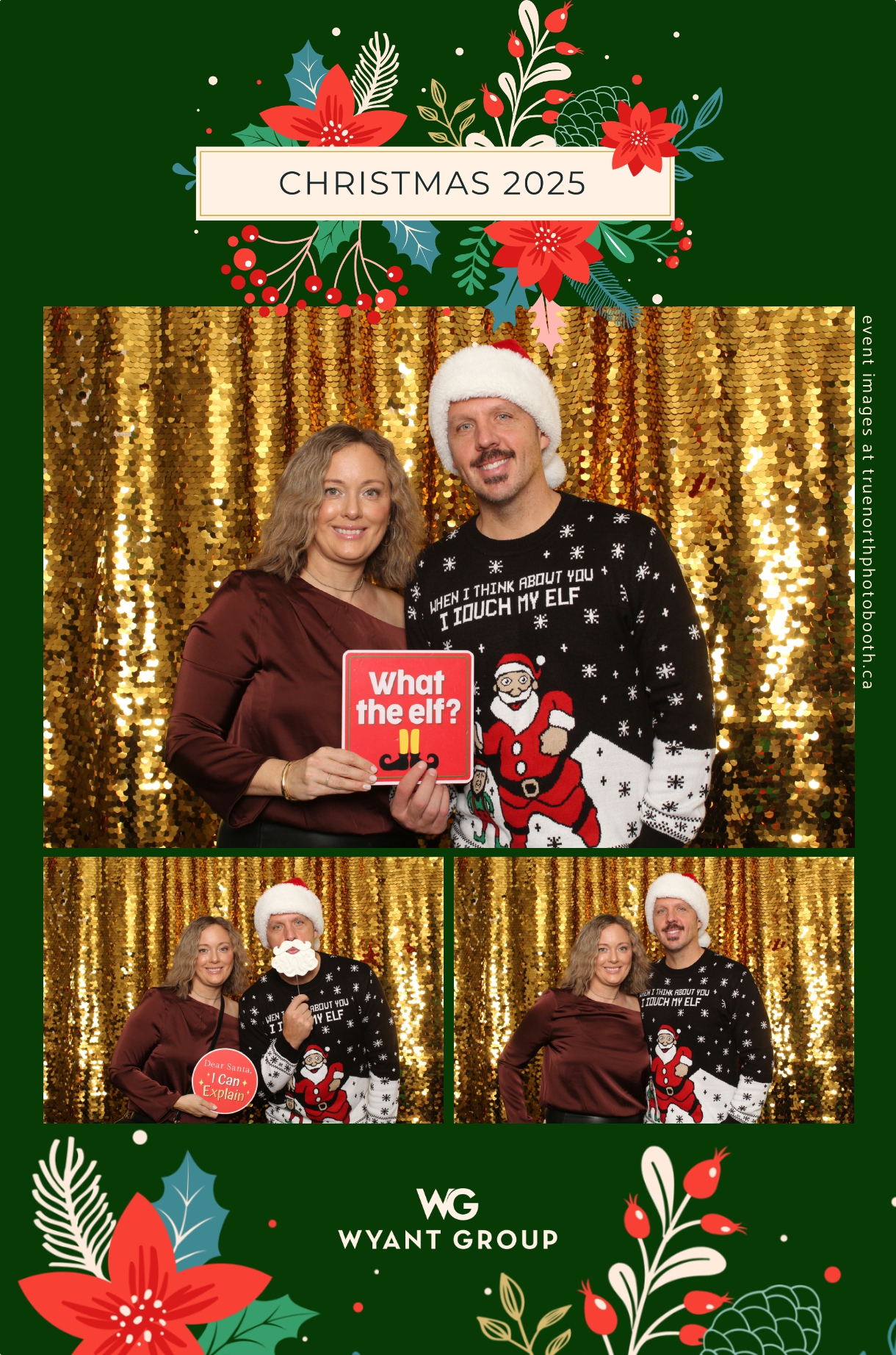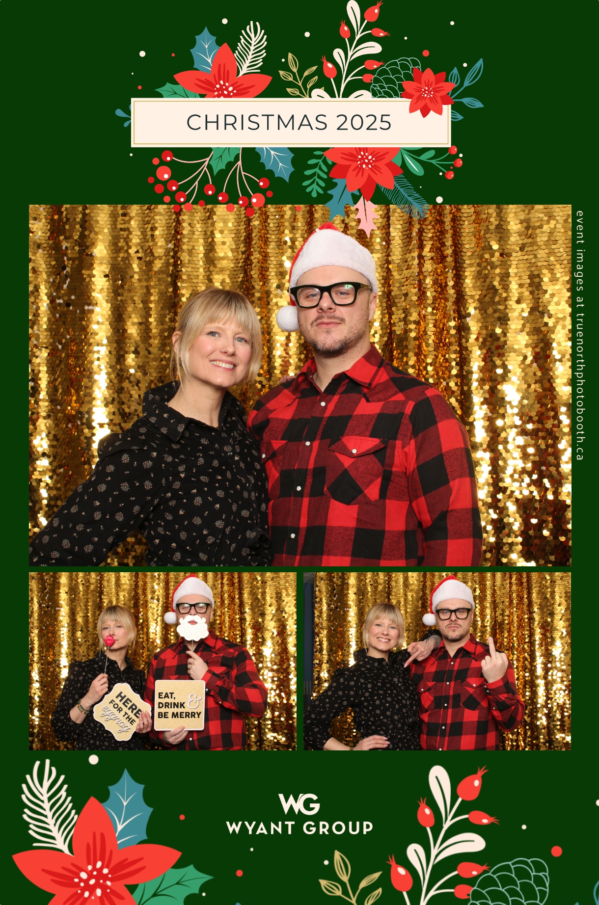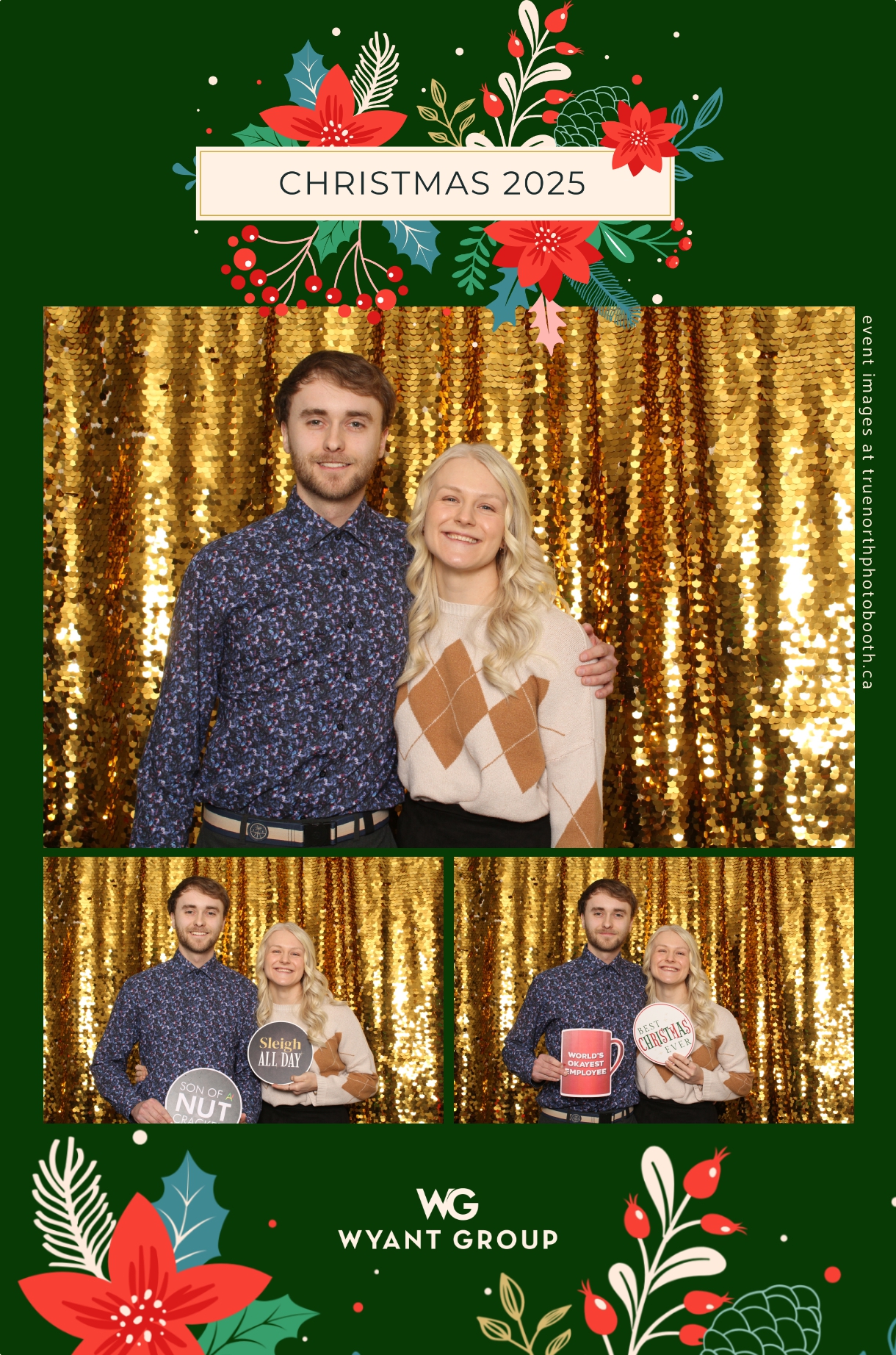 Guests enjoyed capturing memories at the interactive photo booth, featuring elegant 4X6 custom photo strips and a dazzling gold sequin backdrop. The glamorous setup added a celebratory sparkle to the evening, giving attendees memorable keepsakes to take home and cherish long after the holiday festivities ended.