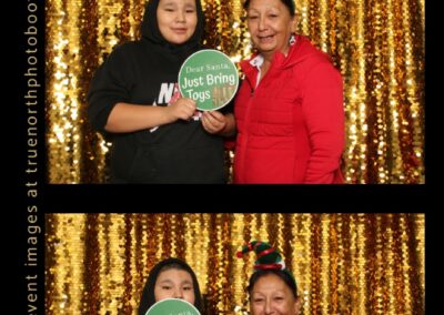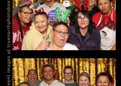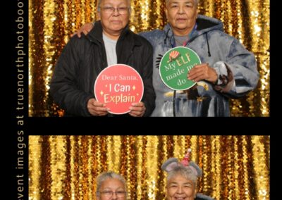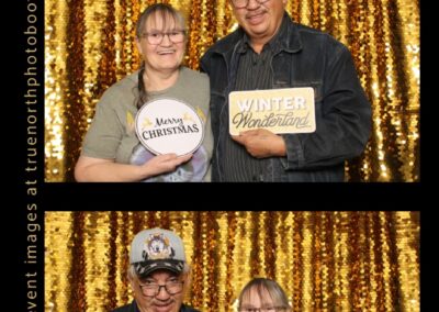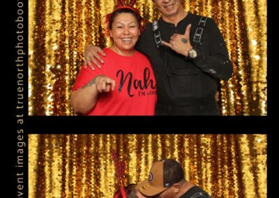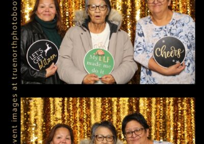 Guests enjoyed capturing memories at the photo booth, featuring 2X6 custom photo strips set against a beautiful gold sequin backdrop. The photo experience added a touch of celebration to the day, giving Elders and attendees a keepsake to remember this special occasion and the respect shared throughout the gathering.