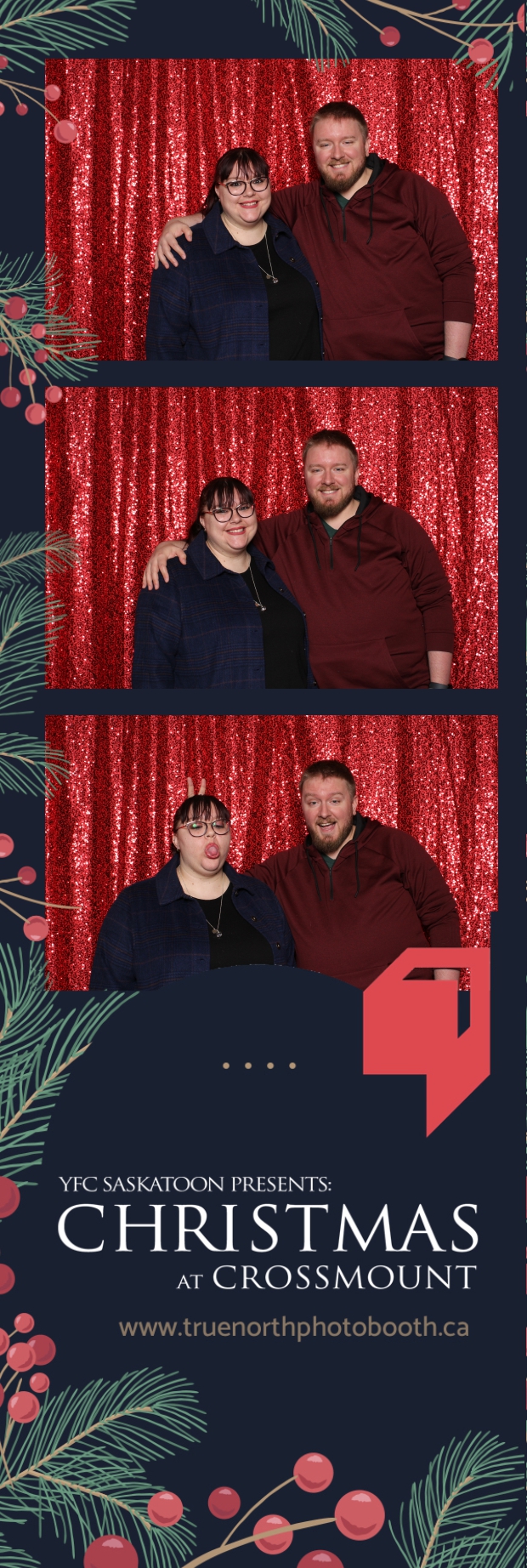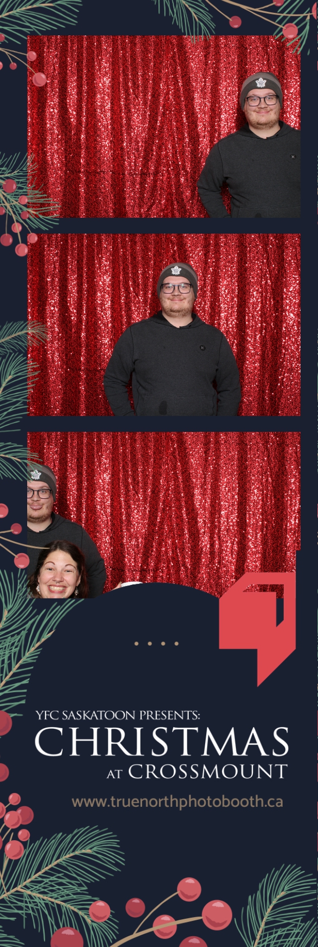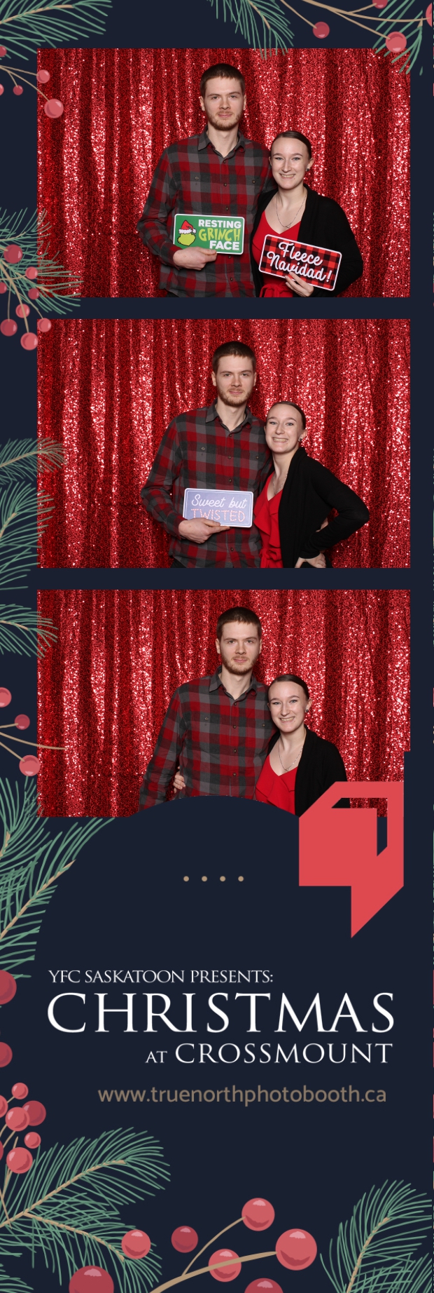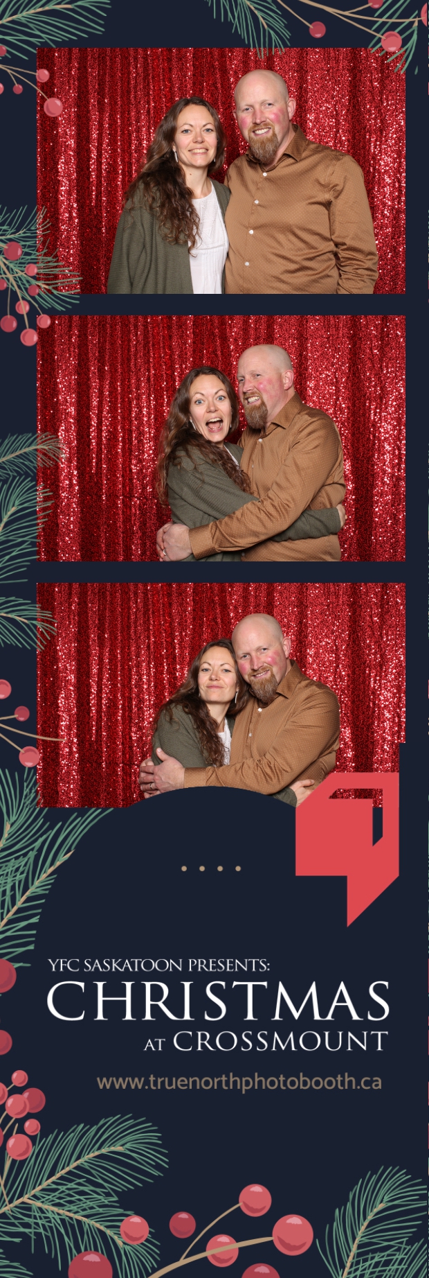 Christmas at Crossmount, hosted by Youth for Christ at the picturesque Crossmount, was a festive extravaganza, and True North Photo Booth brought an extra dose of holiday cheer to the celebration. The 2X6 custom photo strips served as delightful mementos, capturing the smiles and joy that defined the Christmas spirit at Crossmount. Against the backdrop of the vibrant Red Sequin Backdrop, every photo radiated the warmth and vibrancy of the holiday season.