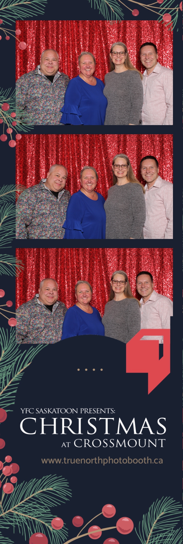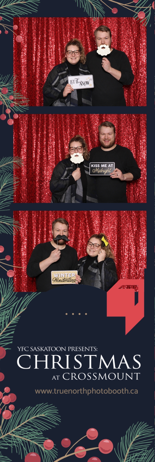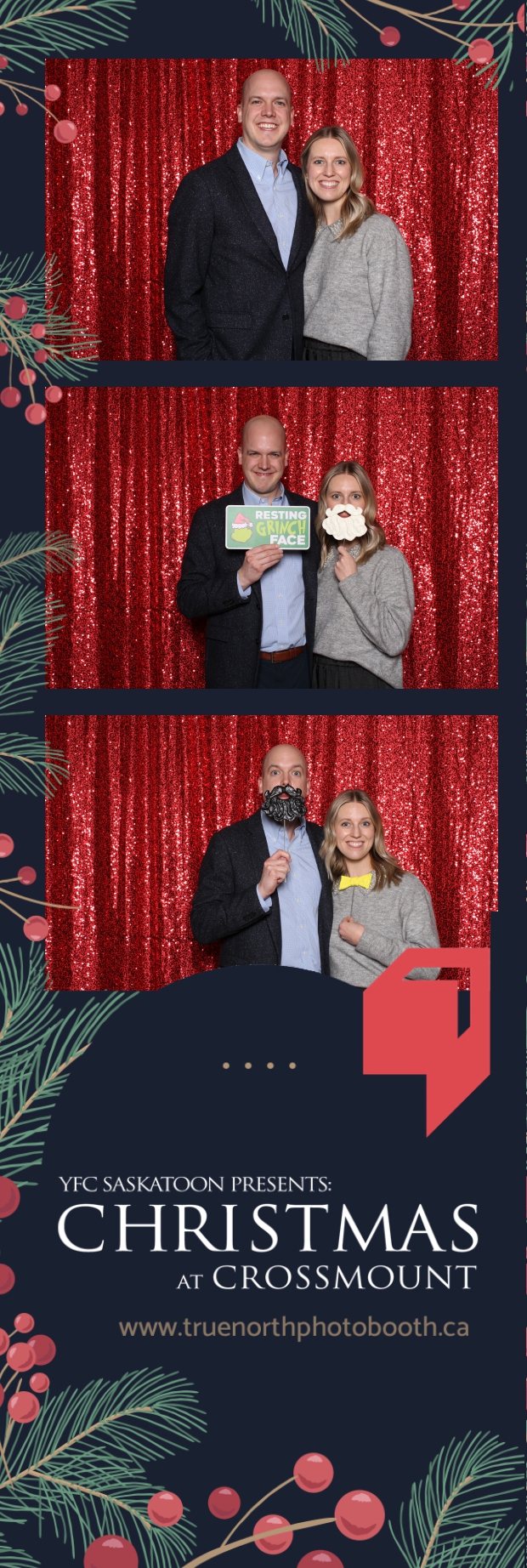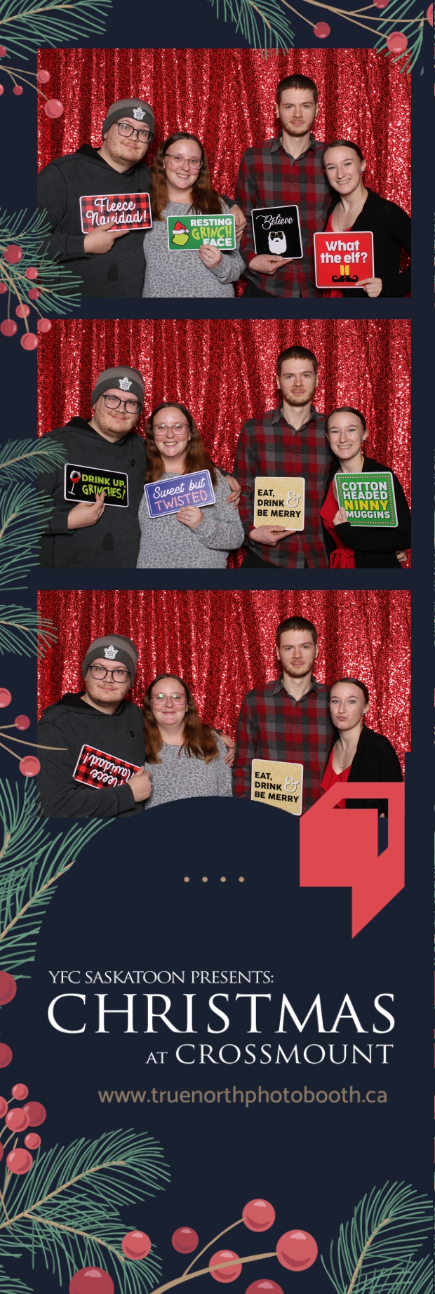 Christmas at Crossmount, hosted by Youth for Christ at the picturesque Crossmount, was a festive extravaganza, and True North Photo Booth brought an extra dose of holiday cheer to the celebration. The 2X6 custom photo strips served as delightful mementos, capturing the smiles and joy that defined the Christmas spirit at Crossmount. Against the backdrop of the vibrant Red Sequin Backdrop, every photo radiated the warmth and vibrancy of the holiday season.