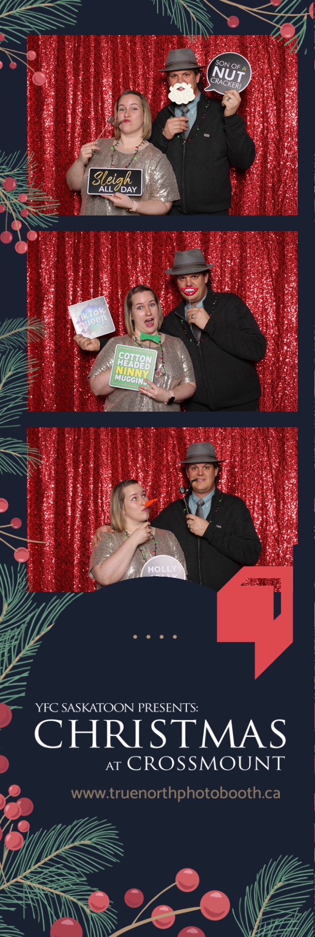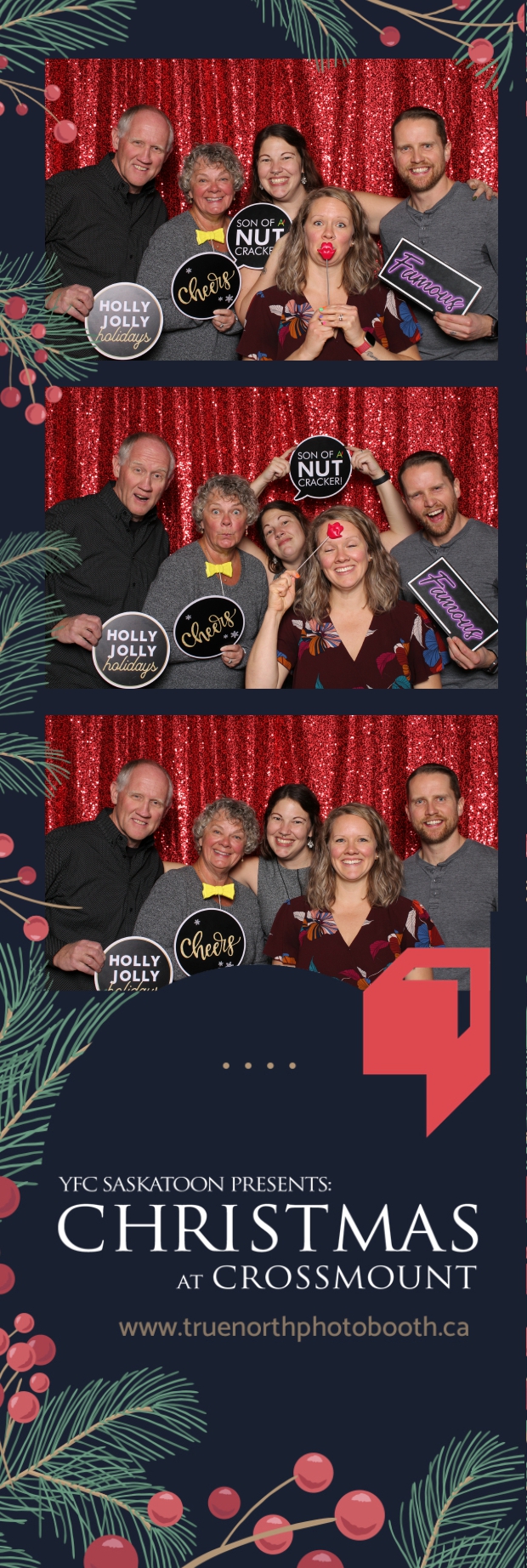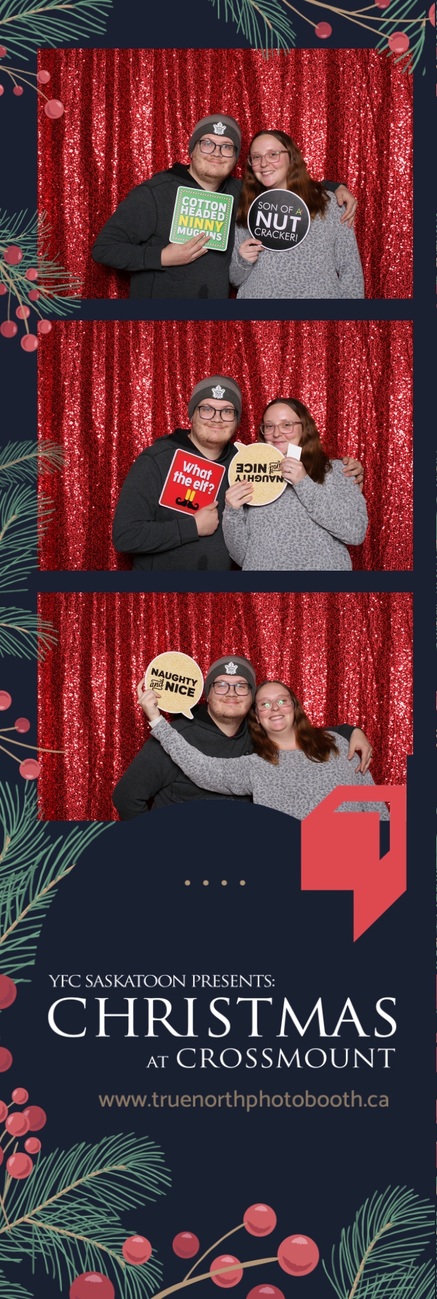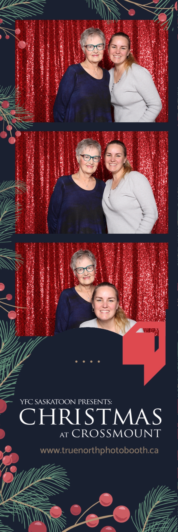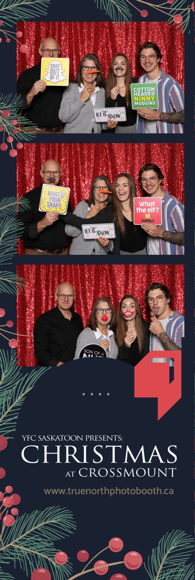 Christmas at Crossmount, hosted by Youth for Christ at the picturesque Crossmount, was a festive extravaganza, and True North Photo Booth brought an extra dose of holiday cheer to the celebration. The 2X6 custom photo strips served as delightful mementos, capturing the smiles and joy that defined the Christmas spirit at Crossmount. Against the backdrop of the vibrant Red Sequin Backdrop, every photo radiated the warmth and vibrancy of the holiday season.