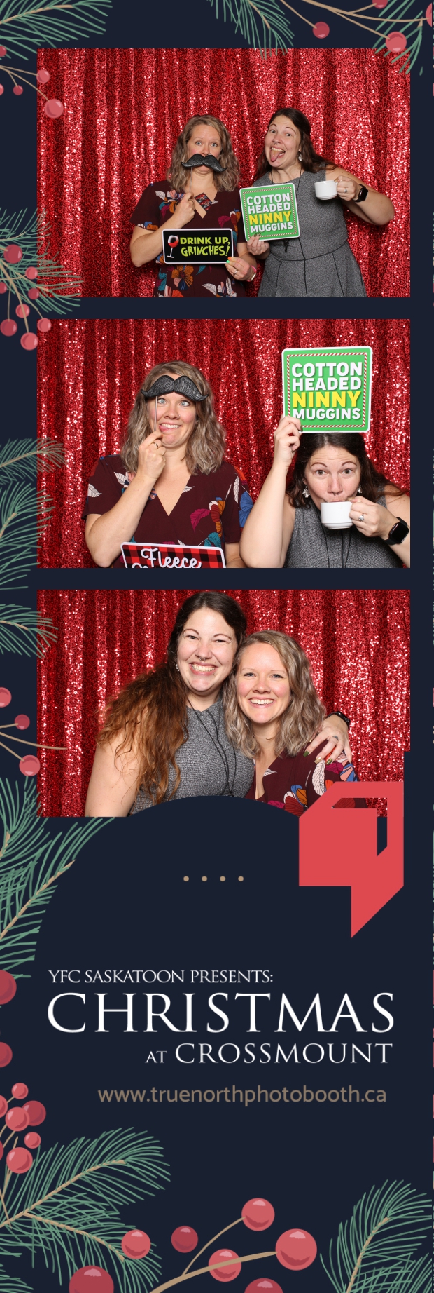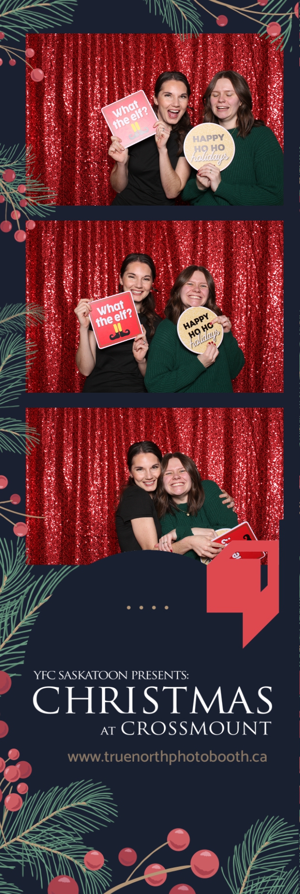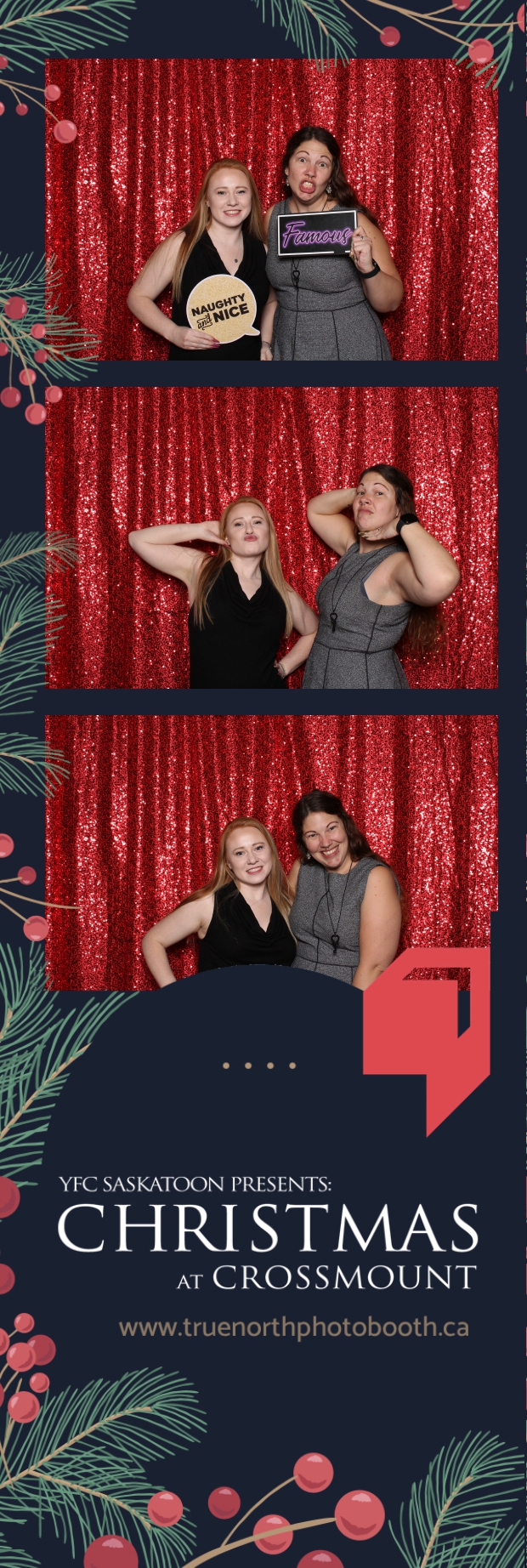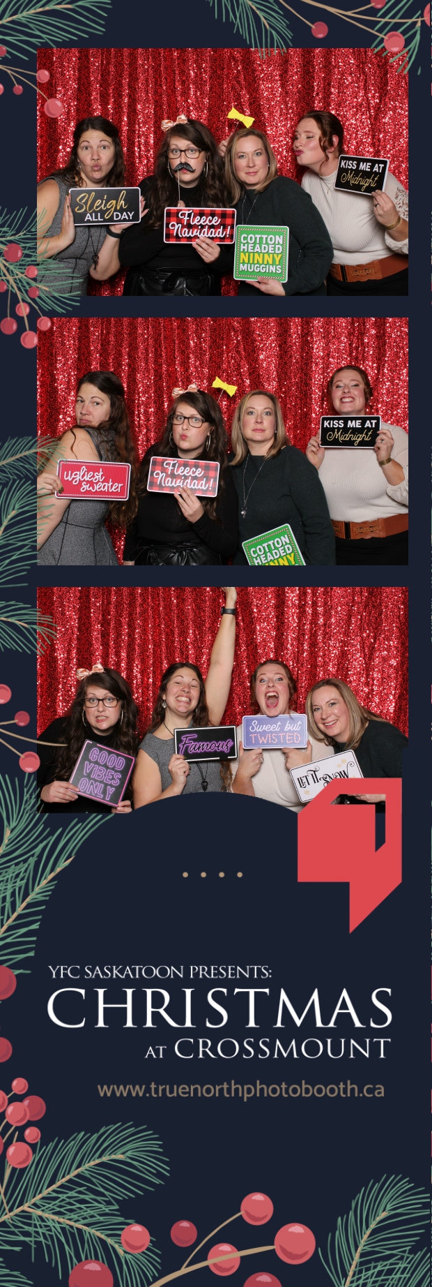Christmas at Crossmount, hosted by Youth for Christ at the picturesque Crossmount, was a festive extravaganza, and True North Photo Booth brought an extra dose of holiday cheer to the celebration. The 2X6 custom photo strips served as delightful mementos, capturing the smiles and joy that defined the Christmas spirit at Crossmount. Against the backdrop of the vibrant Red Sequin Backdrop, every photo radiated the warmth and vibrancy of the holiday season.